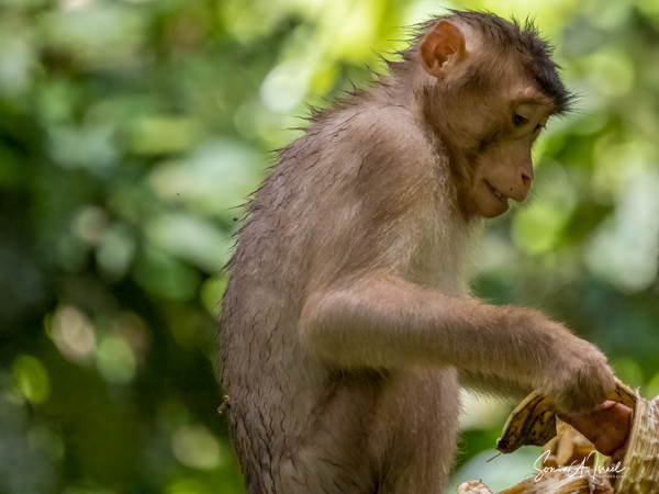 The orangutans had to fight for the fruit, however, as the local macaque monkeys have learned that there is a free buffet here twice a day.