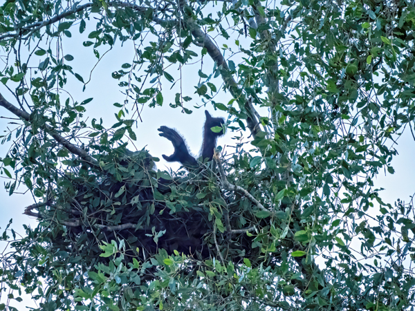 There were two more way up in the trees, climbing around using their long limbs.