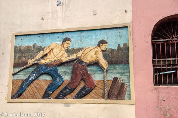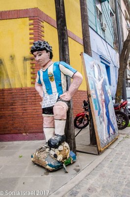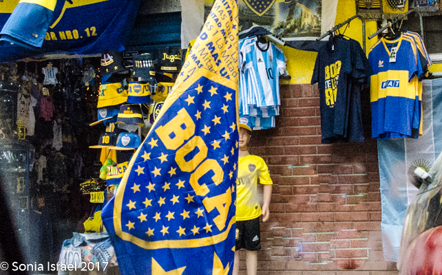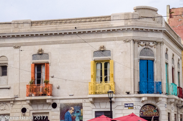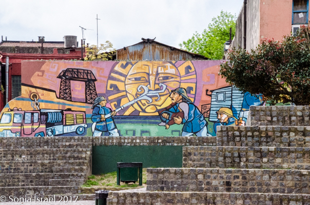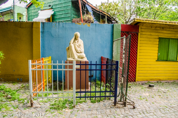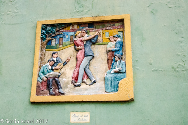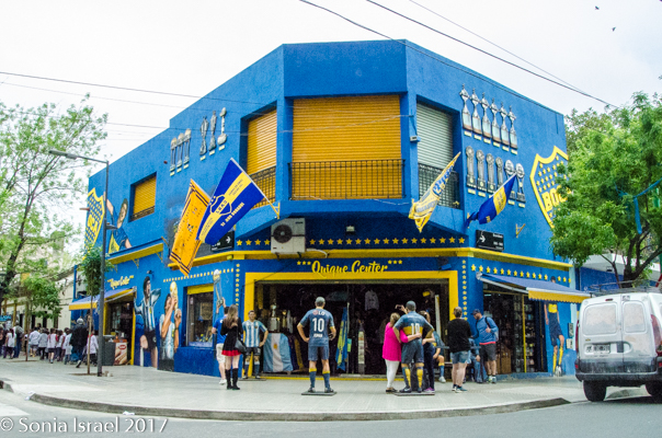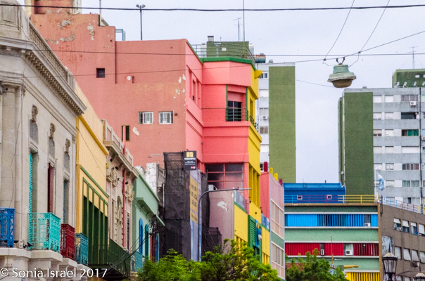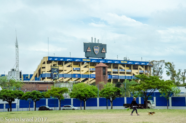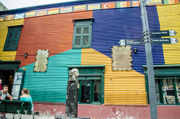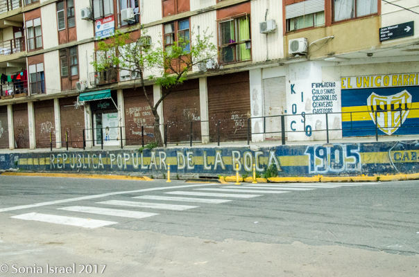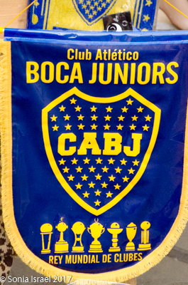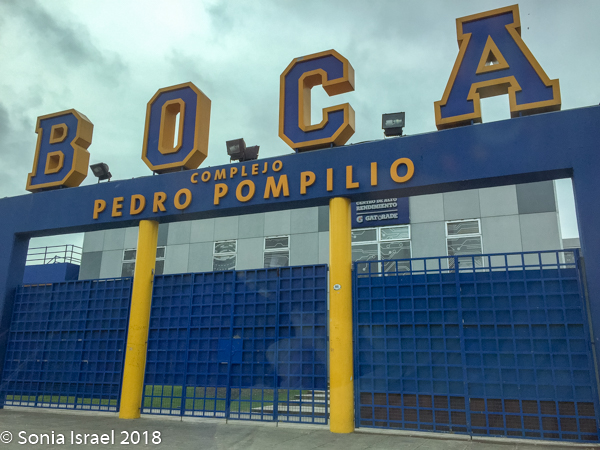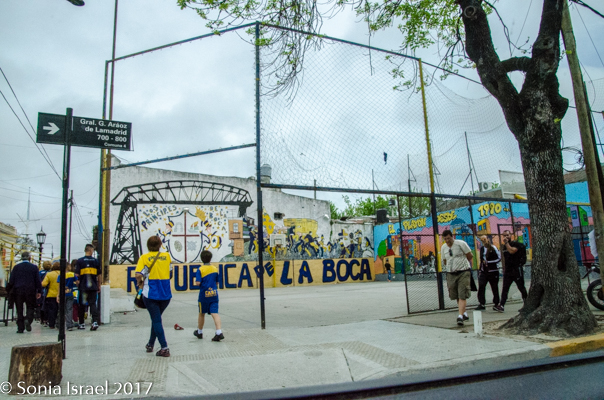 And right down the street from them was the La Boca stadium, for the Club Atletico Boca Juniors. While tourists think of La Boca as the one colorful street (more on that below), among local sports fans, Boca is best known for being the home of world-renowned football club Boca Juniors, which plays in the stadium we were looking at, popularly known as La Bombonera (Spanish for “the bonbon box”). This club has been around since 1913 and is one of the most successful ones in Argentina. Jessica (that is, our guide, Jessica Cymerman) told us this was her team, but our driver favored another team which led to a very animated conversation. Soccer is so important here and everyone has their own favorite.