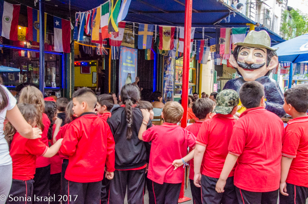 This streets are also full of tango-related souvenir shops, musicians and locals dancing the tango on the street. We stopped for a few minutes to watch one couple dancing. We were not the only ones enthralled by the sights. There was a group of school students, in their red t-shirts, also watching, and enjoying, and swaying to the music.