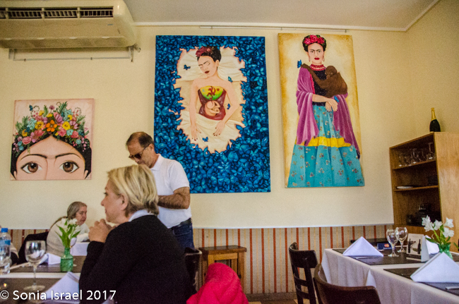 Our first stop was lunch at Vivanco, which depending on who you ask, was either an early 20th century villa that that was once an Italian club or was formally a rowing club, or perhaps both. The building is beautiful, just like a villa. Although there were plenty of tables outside with great views of the river and the rowers, we were shown inside to two long tables set up for our group. The walls were covered with colorful paintings of Evita, which gave us plenty to look at. And since there were quite a few locals there, I imagine the food is quite good. But many of the tours, like ours, stop here for empanadas and a drink which makes it a touristy place. That worked for us, but maybe not so much for the locals.