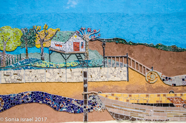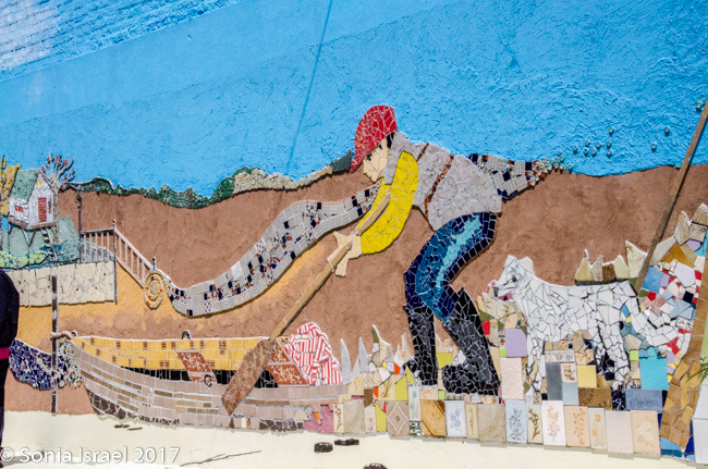 The one interesting part of the market was a mosaic wall depicting the Delta and the houses on stilts and the boats. That was quite beautiful.