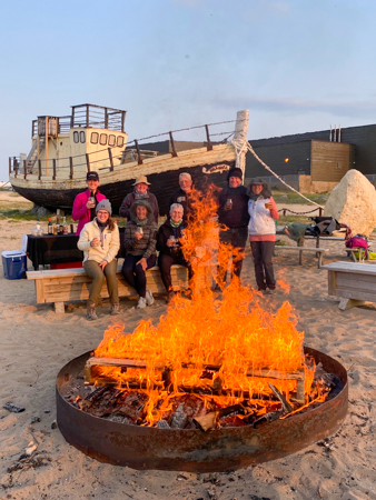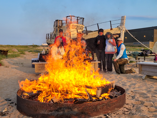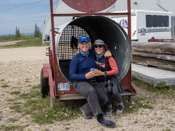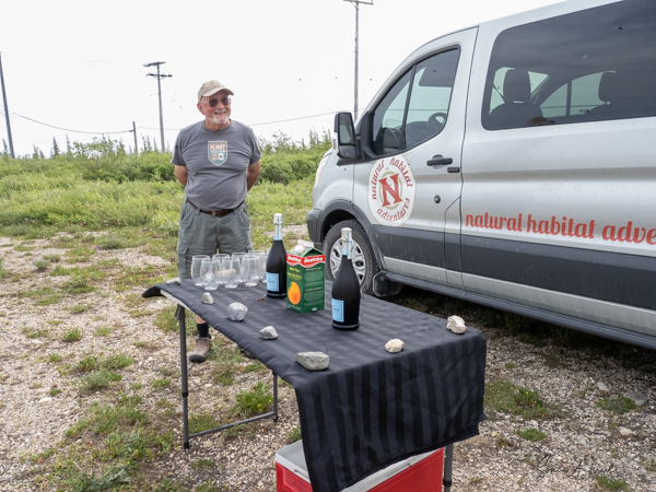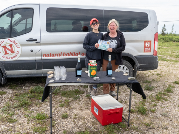 Our last day happened to be Becky’s birthday and Nat Hab surprised us all with champagne and snacks before we headed to our chartered flight back to Winnipeg. They were all set up near the “bear jail” (more on that in the Churchill Polar Bear blog). And we made the most of our last moments together.