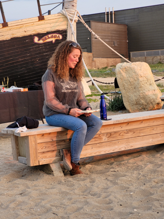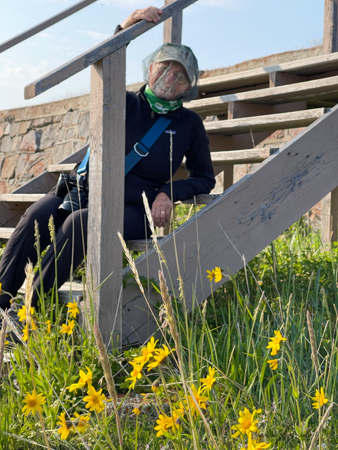 One of the local women, Koral Hrominchuk, came and recited her poetry for us. And we sat quietly, drinking wine or beer or soda, nibbling on snacks, listening to the poetry and watching the sun set, throwing beautiful colors into the sky…all while covered in our nets to avoid the bugs.