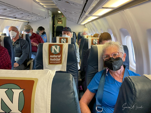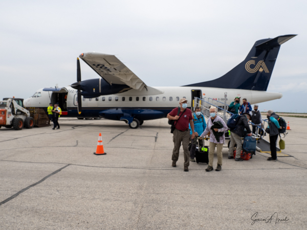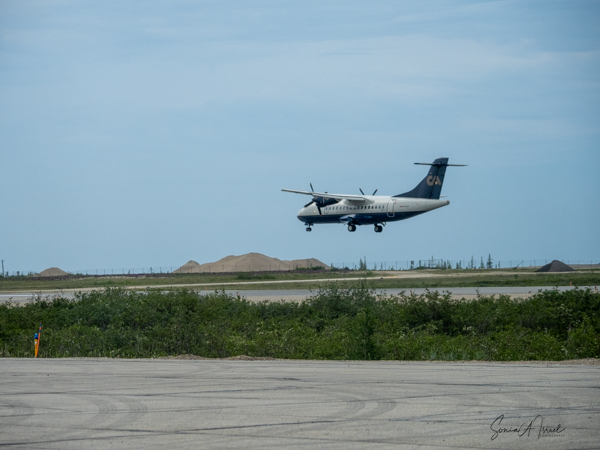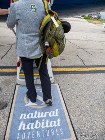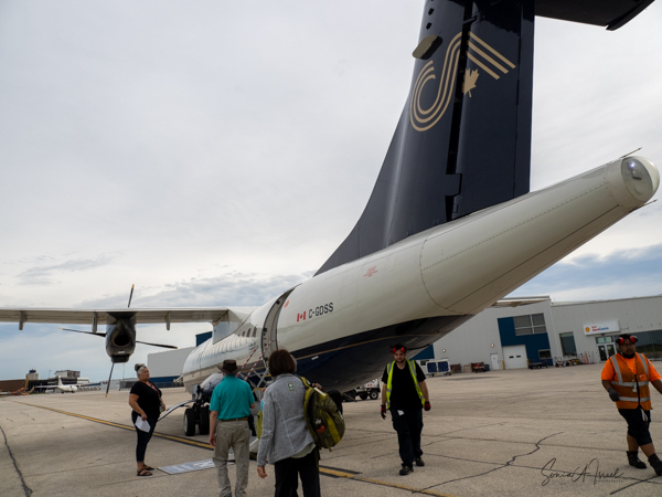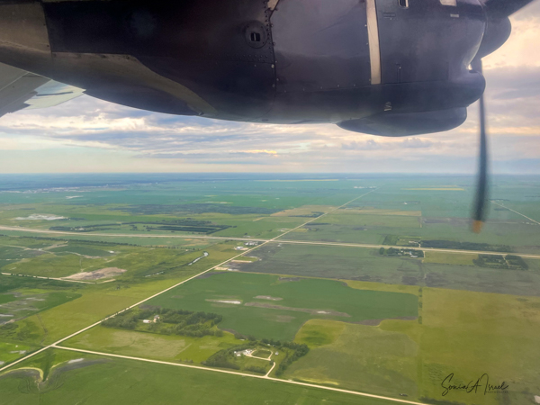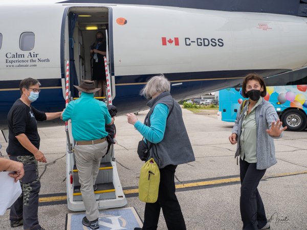 Bright and early the next morning, we were driven to a private airport, right onto the tarmac for our charter flight to Churchill. How lovely to not have to deal with going through security and fighting crowds. We walked onto a Natural Habitat carpet leading up to the stairs of the ATR 42-Calm Air prop plane for our 2 hour and 15 minute flight. It was loud! Next time – ear plugs!