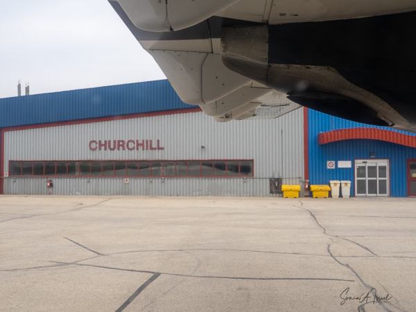 The runway at Churchill used to be 15,000 feet as there was once a US base here watching out for a Russian attack. Most of the military buildings were torn down in the 1970s, but there are still some remnants. We coasted to a stop in front of the blue and red building, grabbed our carry-on luggage and made our way into the terminal – which is really just one large room.