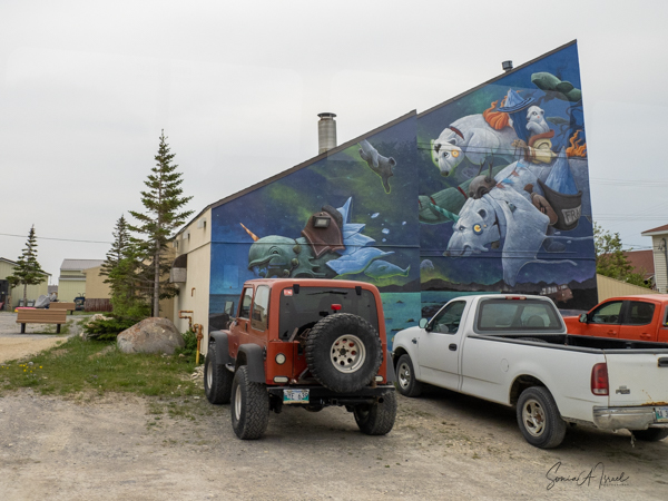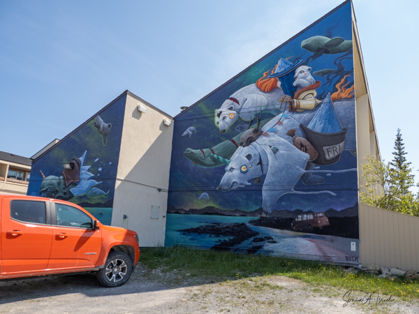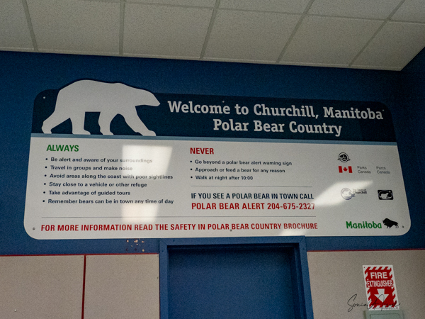 As I mentioned in my introduction, Churchill is probably most famous for its polar bear migration. During the season, bears will wander down the streets of Churchill. There are signs everywhere warning people to be careful. And murals and statues. And every night at 10:00pm a siren goes off to remind people to be indoors.