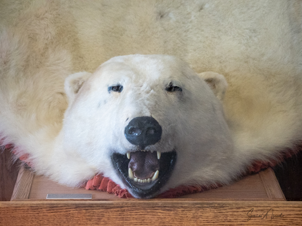 There were several displays of polar bears and of local art. There were t-shirts for sale as well as local jewelry. But we were anxious to grab our bags and be on our way.