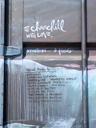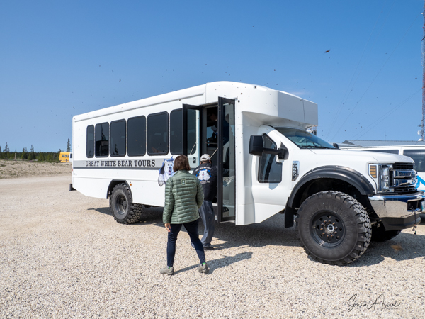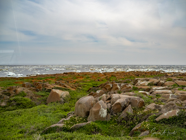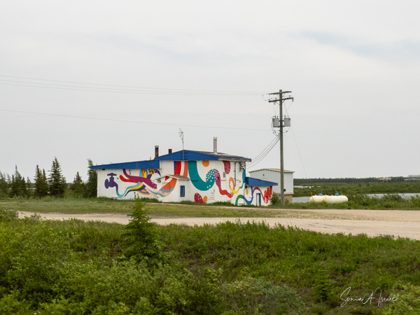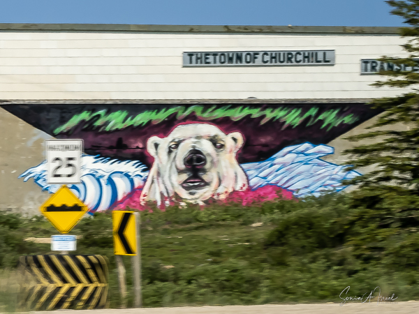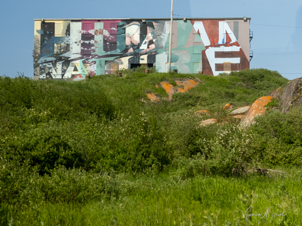 We climbed onto our mini-bus with our driver for the week, Lawrence, and headed into town, passing some of the murals (see my post on the Murals of Churchill), and other Churchill landmarks, which I remembered from my last trip year. The difference was that last time everything was covered in snow.