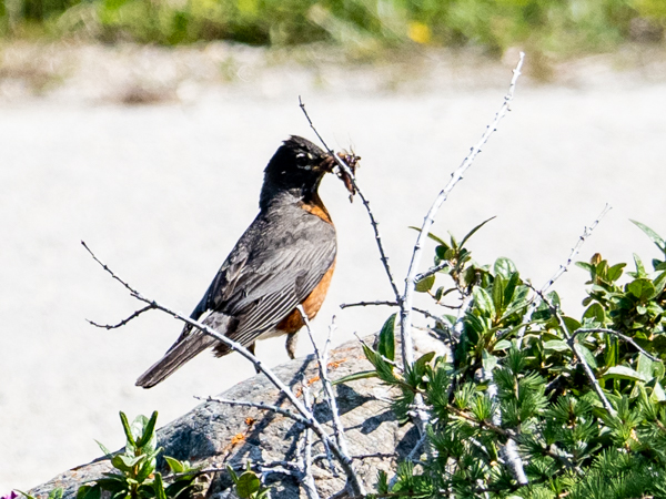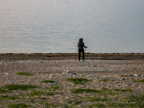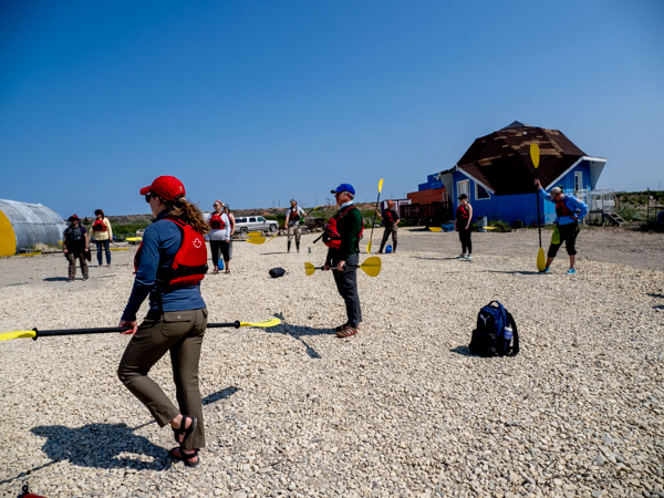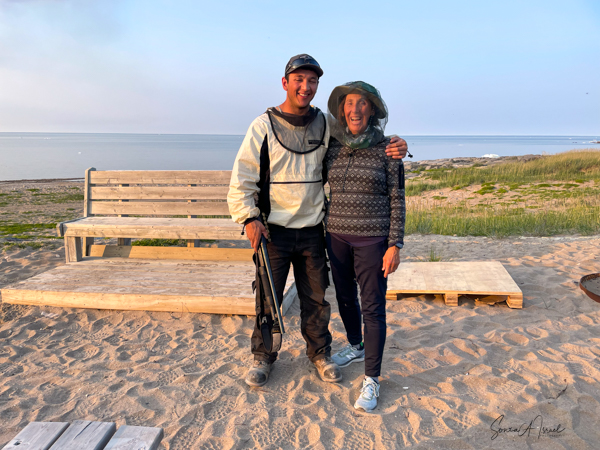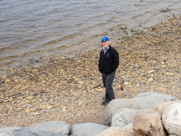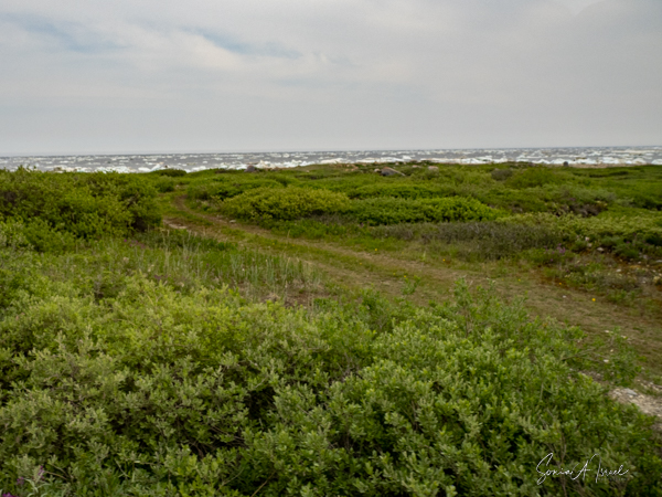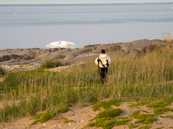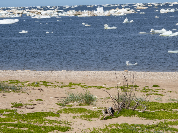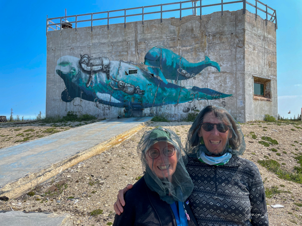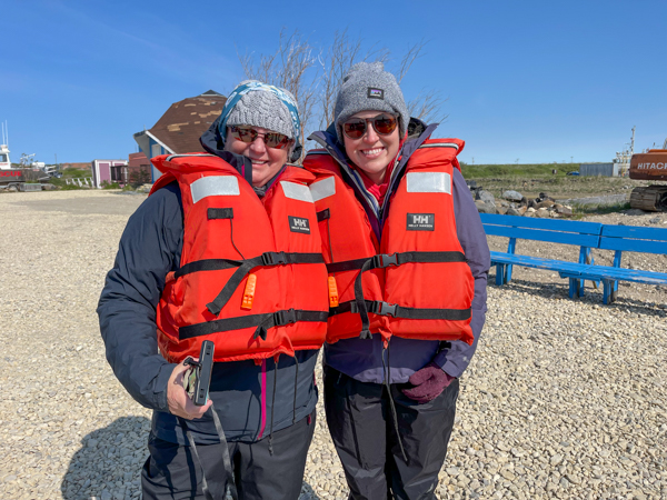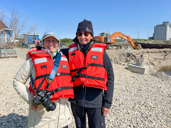 We were scheduled for a land tour and barbeque that afternoon, and we weren’t scheduled to go out onto the water until the next day, but Eleanor knew we were anxious to set our eyes on the belugas. So we walked through the town and then out to the beach where we could spot them. They were quite far away, but we could see their white bodies coming out of the water. We also saw a seal swimming by. And we were so excited we didn’t want to leave. But eventually Eleanor dragged us away with promises of many more sightings.