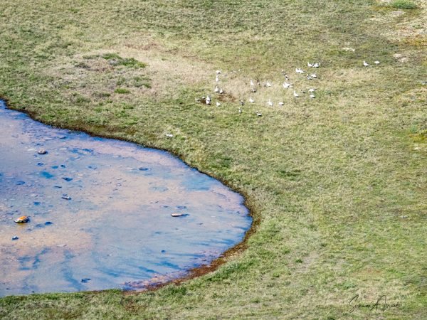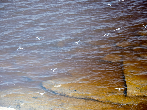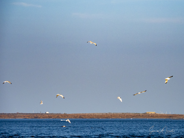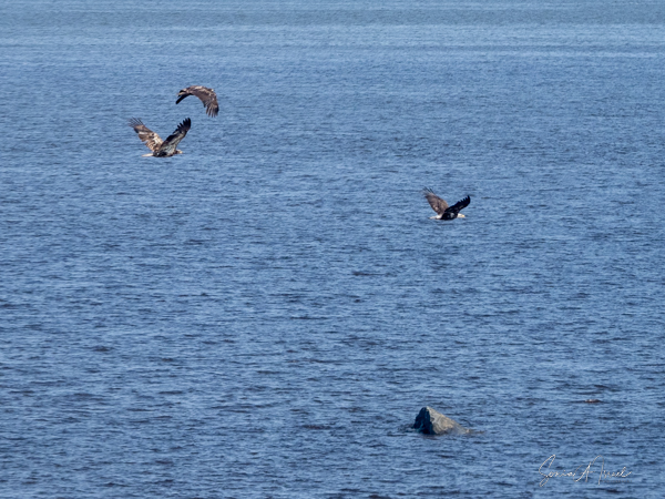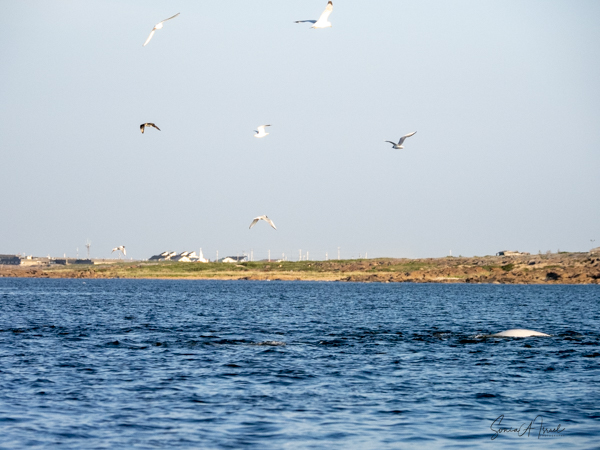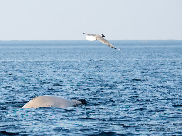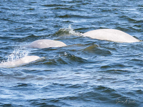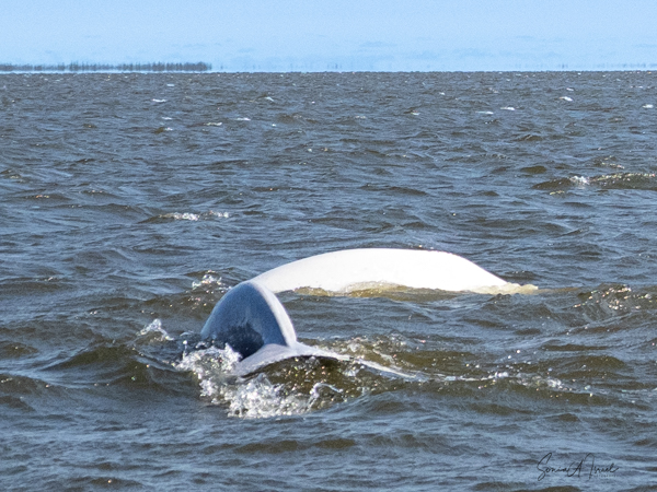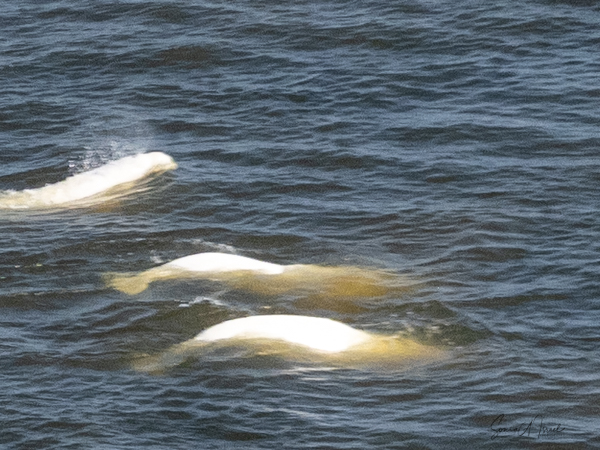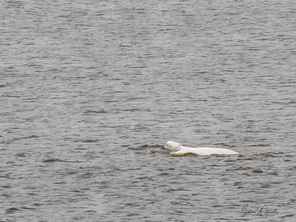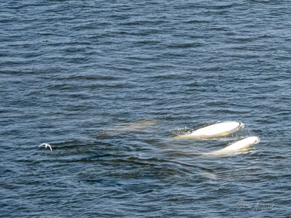 And finally, we saw belugas. I was hoping to see huge numbers of them. After all, there are thousands of them in the bay. But we only saw small pods of two or three whales. Nevertheless, it was quite a sight to see them swimming under the water. And of course, where there are belugas, there are birds.
