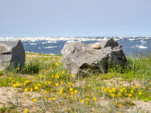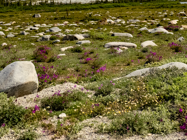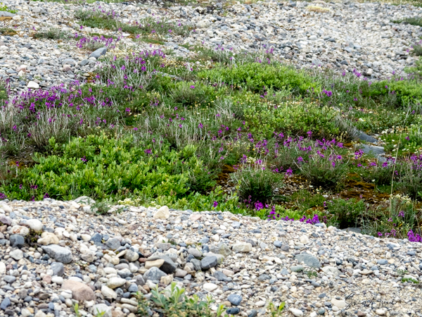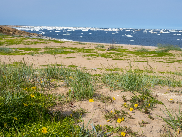 This time we could see the water covered with small ice floes. And at the same time, the coastline was covered in flowers of all colors. It was such a contrast.
