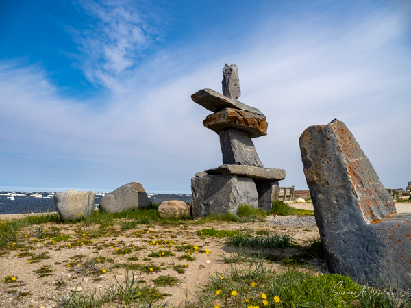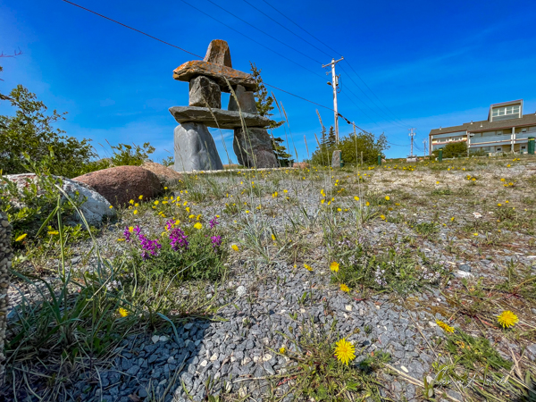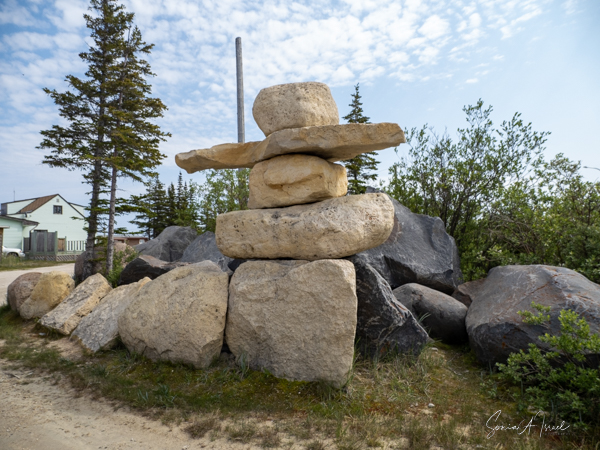 There are at least 4 inukshuks in Churchill. One is right on the coastline, at the beach in Churchill. We passed it on our way into town, and we stopped there a few times during our week here. Two were on the street in town and one was at the museum.