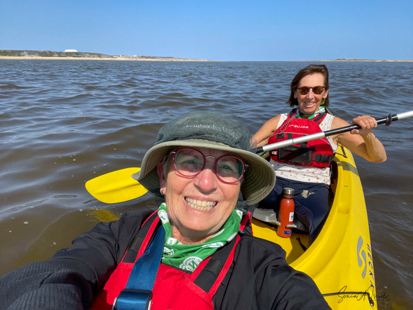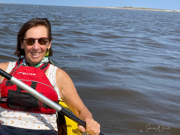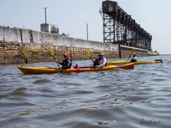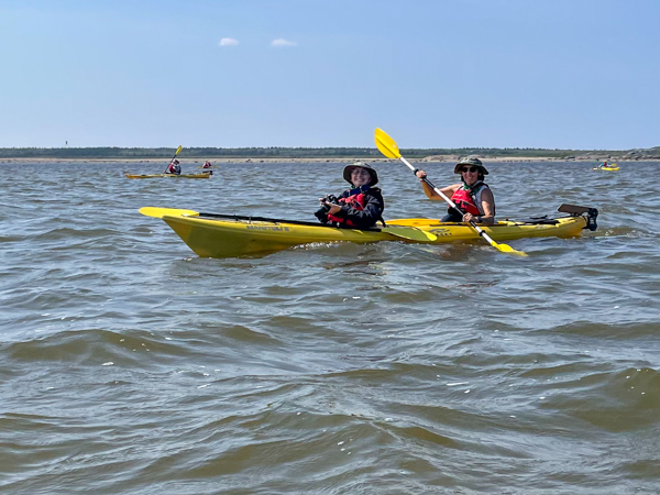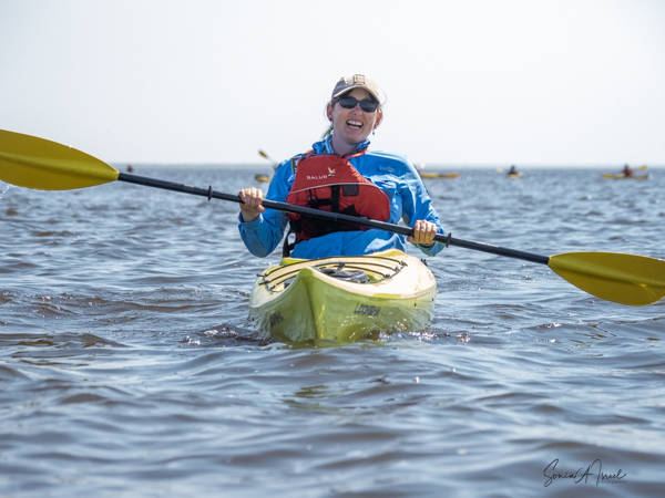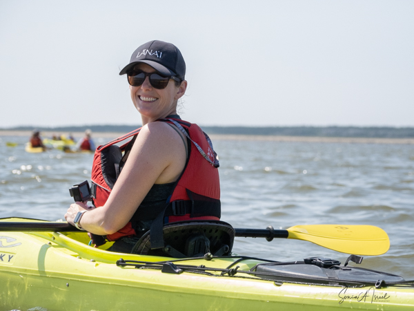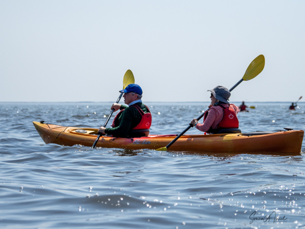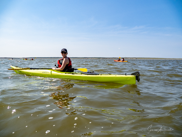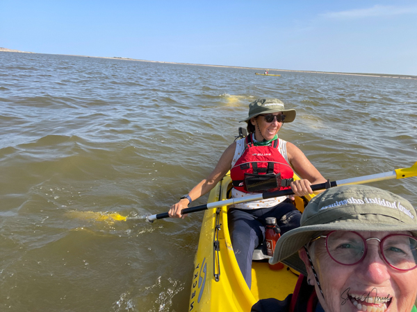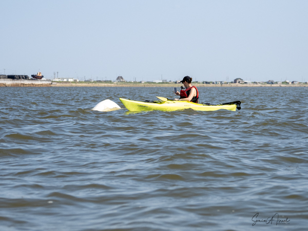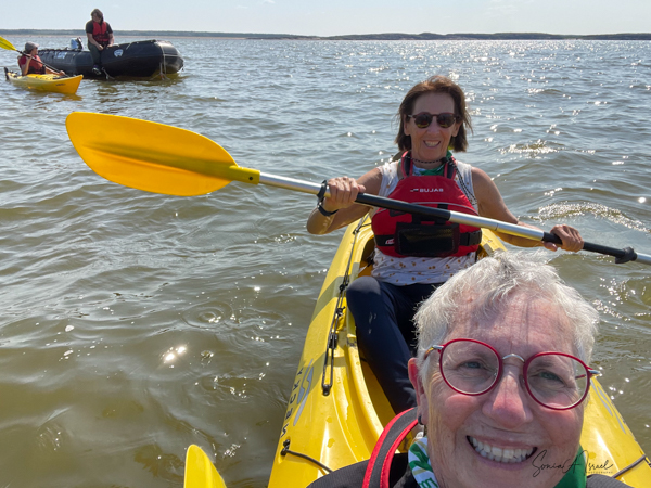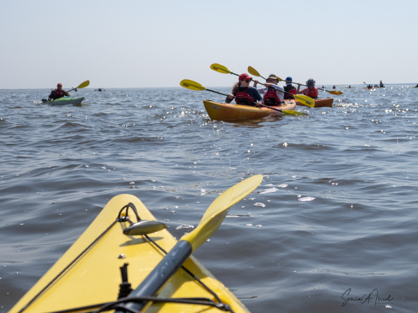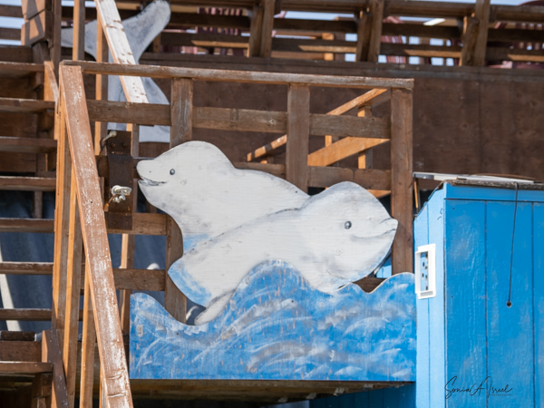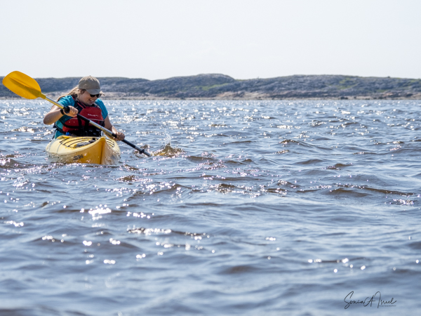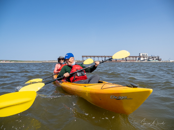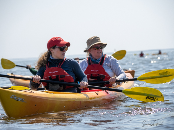 On our last afternoon we got to kayak around the bay for about two hours. After being instructed on how to kayak safely, Ruthi and I climbed into a two-woman kayak, she in the back doing most of the paddling while I was in the front mostly taking pictures. The belugas are attracted to the kayaks and would bump us or follow us. They were everywhere. Again, I didn’t know where to look first. They would be so close and all of a sudden they would be far away. They are fast!