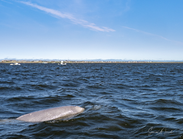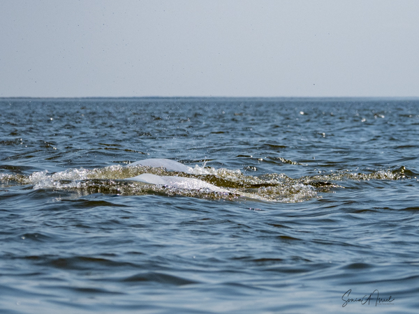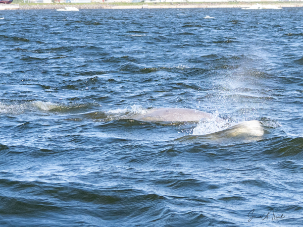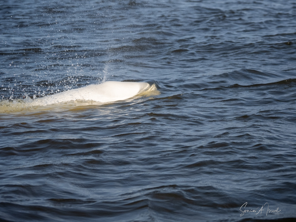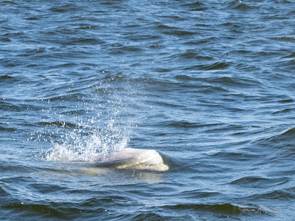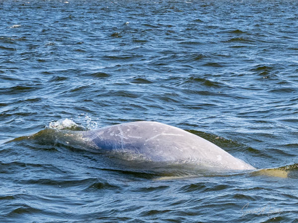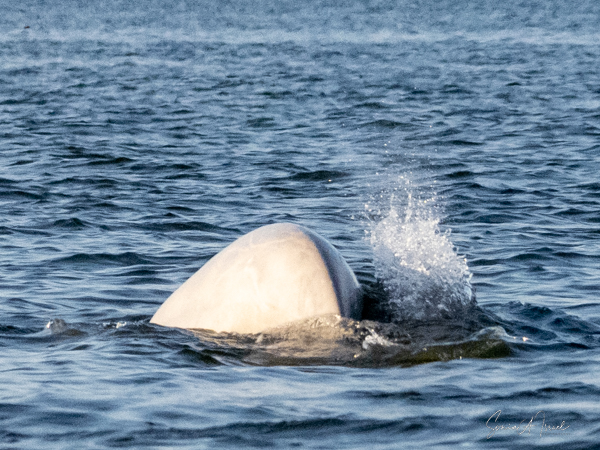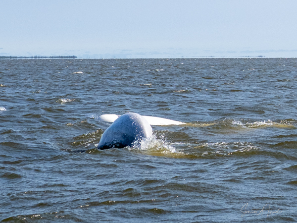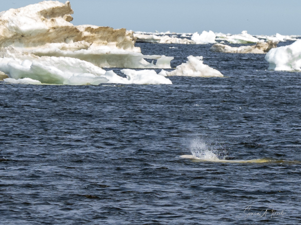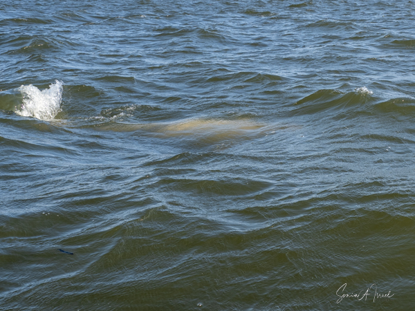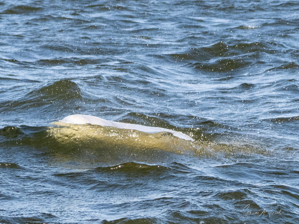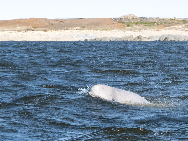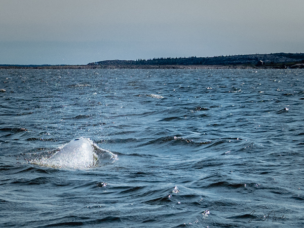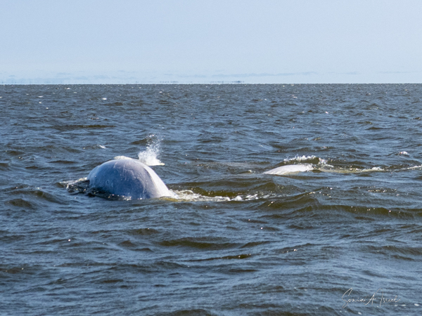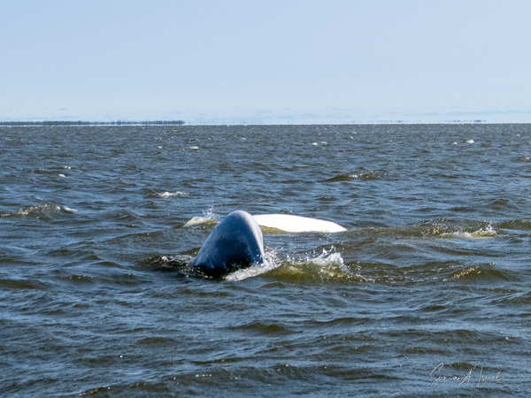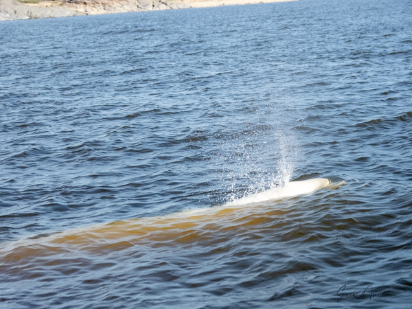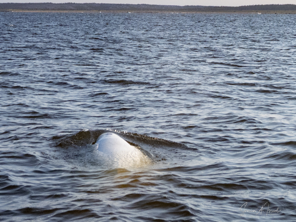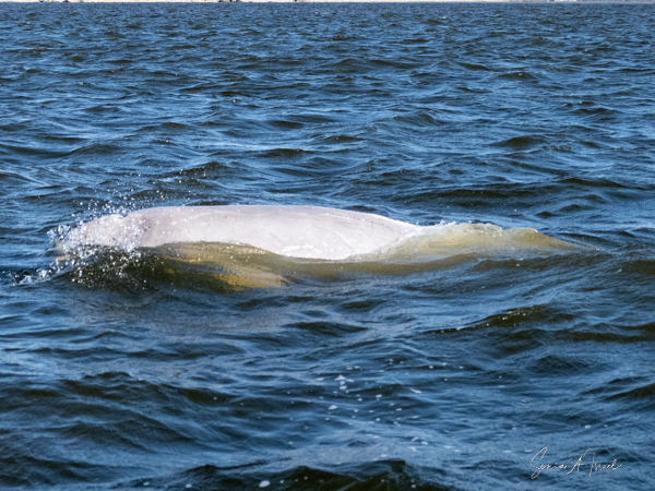 I was hoping to catch one doing a spyhop. A spyhop is when a whale sticks its head out of the water to have a look at what is going on up on the surface. Belugas, unlike other whales, stick their heads our and rotate their heads as, as I mentioned above, they don’t have fused neck vertebrae. And we did see some whales doing just that. Unfortunately, I could not catch it for a photo. But I sure have a mental picture in my head of two whales sticking their heads up. I hope to never forget that sight.