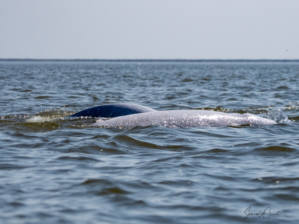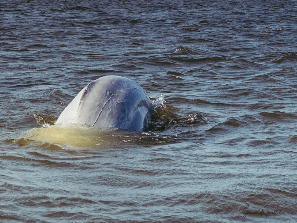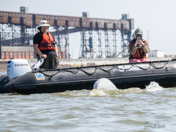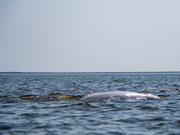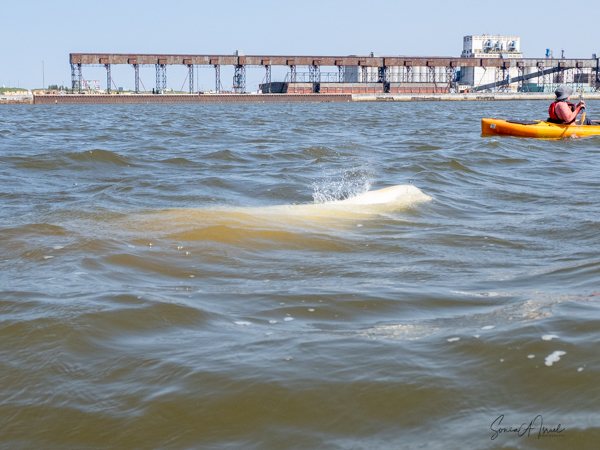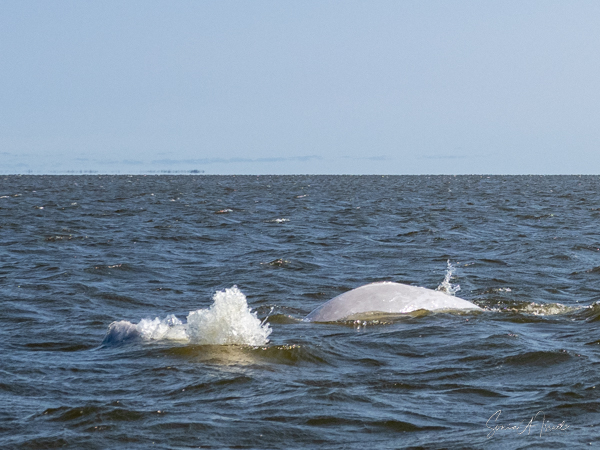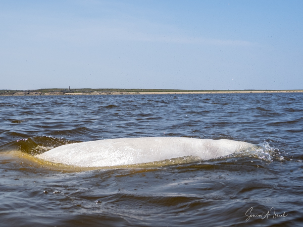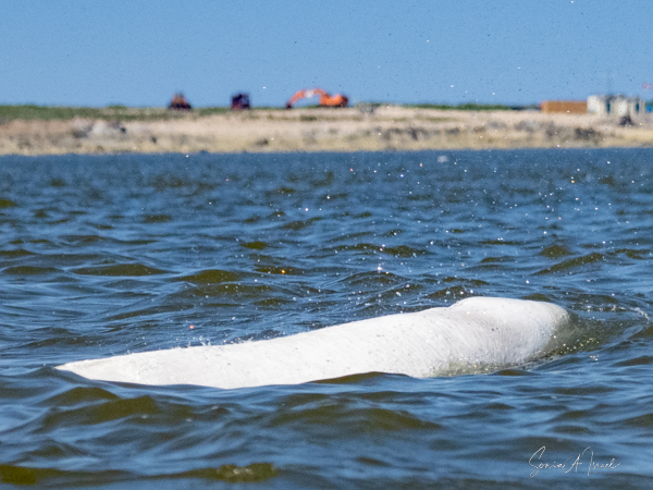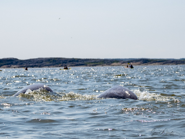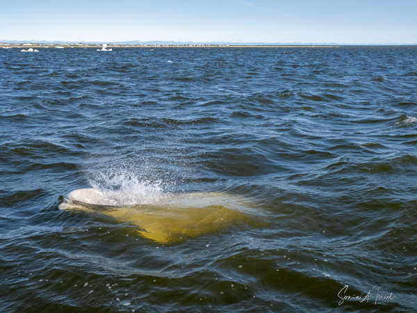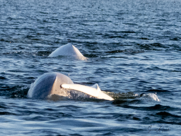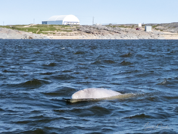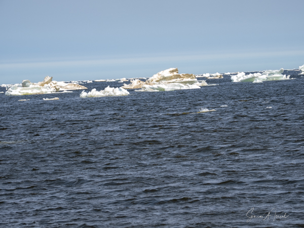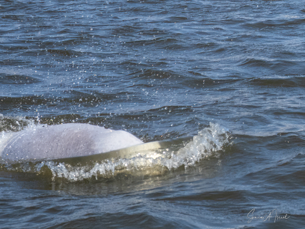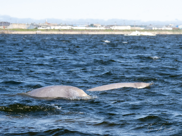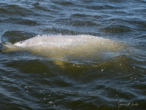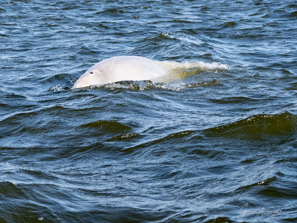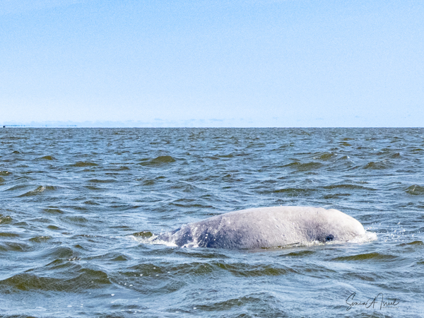 I was hoping to catch one doing a spyhop. A spyhop is when a whale sticks its head out of the water to have a look at what is going on up on the surface. Belugas, unlike other whales, stick their heads our and rotate their heads as, as I mentioned above, they don’t have fused neck vertebrae. And we did see some whales doing just that. Unfortunately, I could not catch it for a photo. But I sure have a mental picture in my head of two whales sticking their heads up. I hope to never forget that sight.