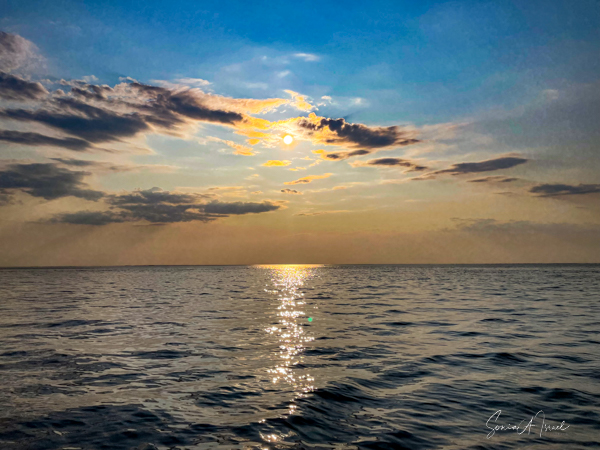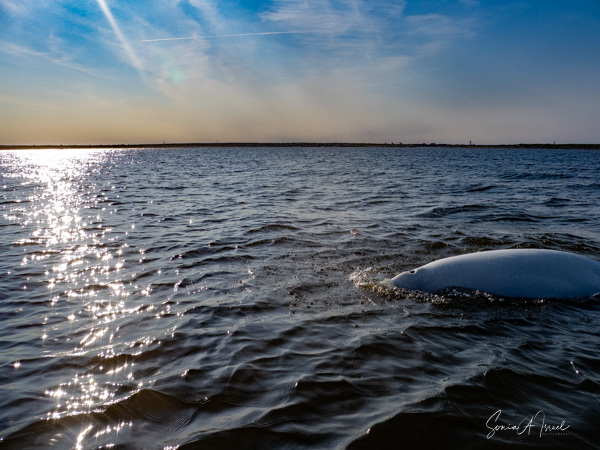 As we headed back to shore, the sun began to set. The sky turned colors, the sun reflected on the water, the belugas swam across the rays. It was beautiful.