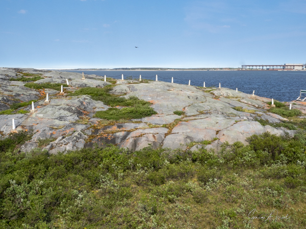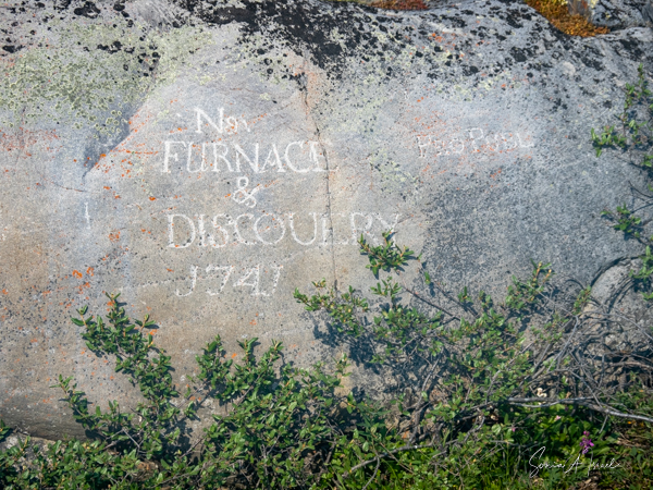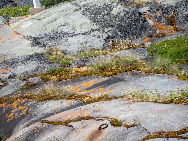 We also flew over The Prince of Wales Fort (more on this in my Churchill post) and over Sloop Cove. Sleep Cove is covered in names carved into the rocks by the men who lived at the fort and worked with the Hudson Bay Company boats. It is called Sloop Cove because sleeps were the wooden sailing ships used during the fur trade. During high tide, there would be 10 feet of water so it was a great spot to moor the boats. We could see the iron rings which had been driven into the rock to secure the sloops.