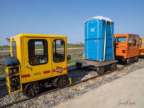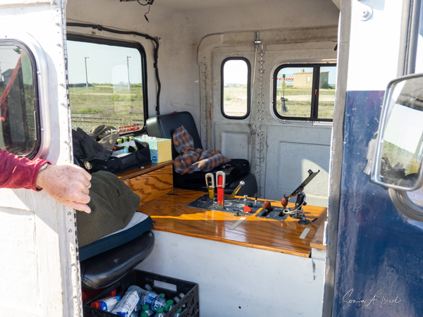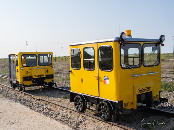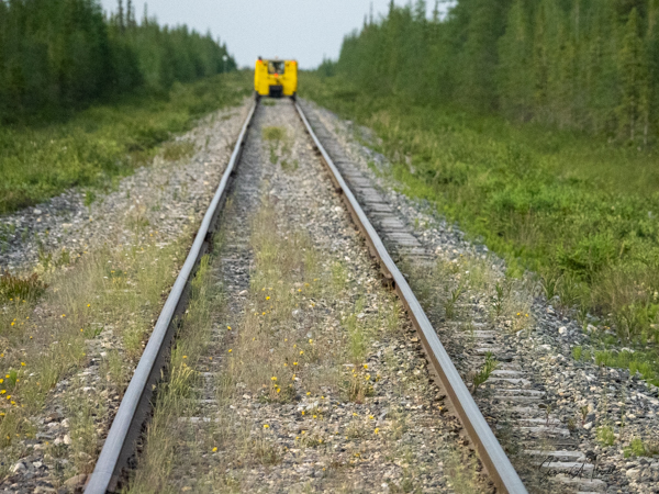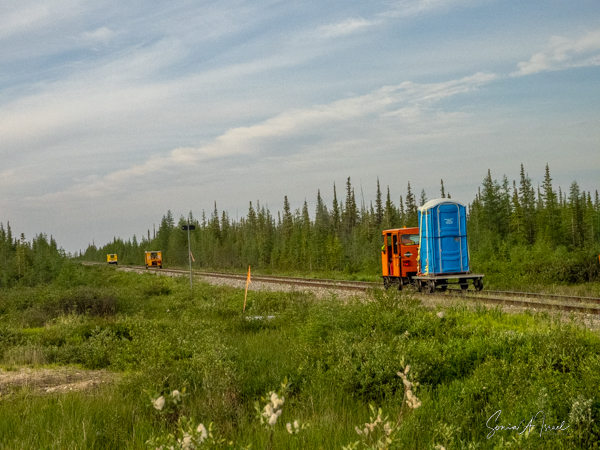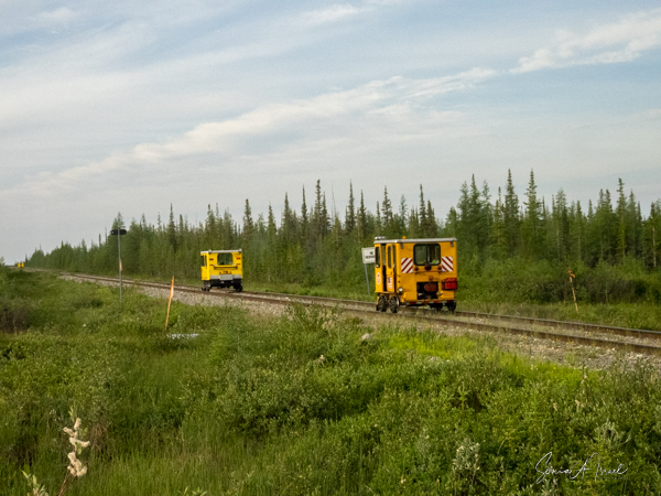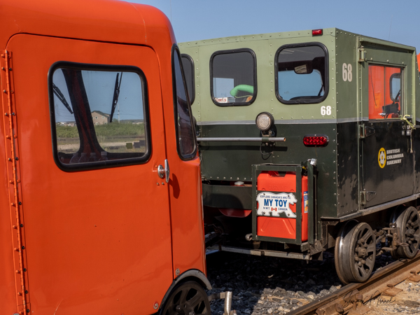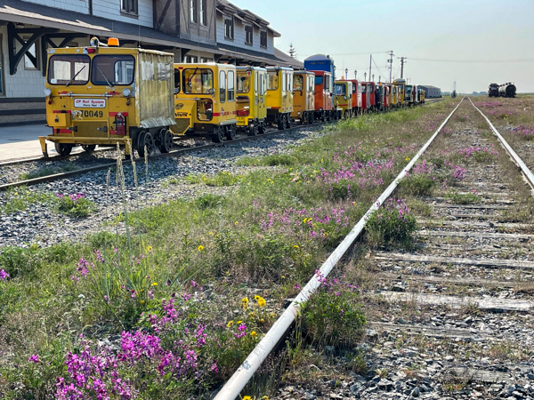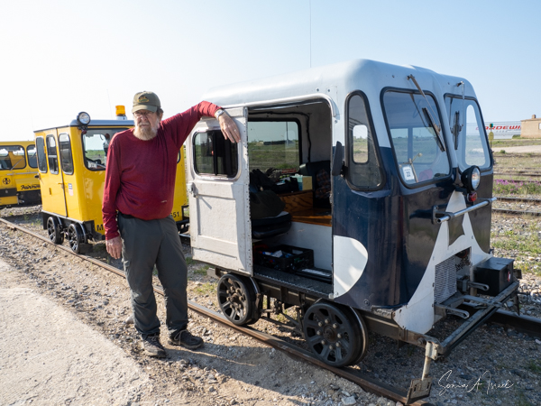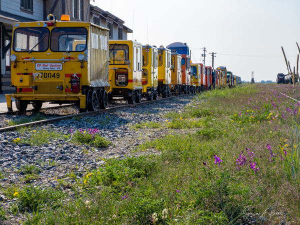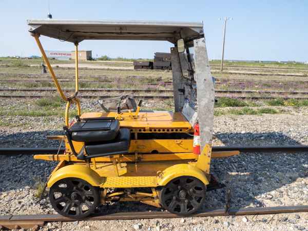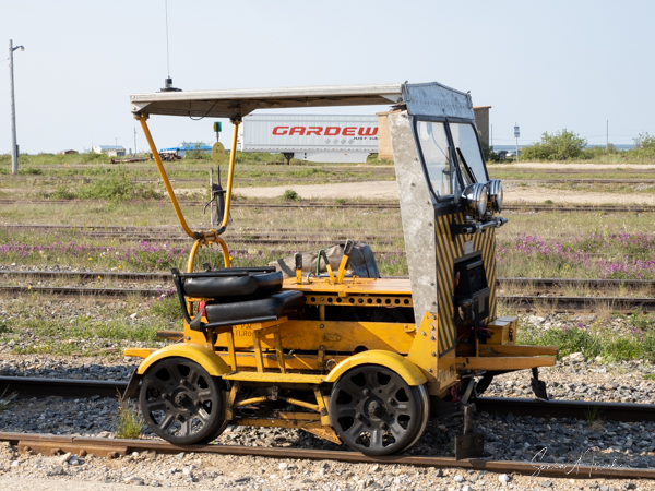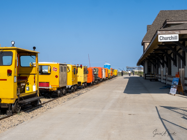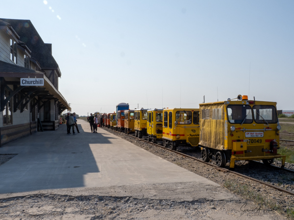 So why do I bring this up now? These days the jiggers are used by handcar enthusiasts at vintage railroad events.  Or there are clubs where they travel around the country. And that is exactly what we ran into. We stopped at the Churchill railway station just by chance, and there on the tracks were all these handcars. We chatted with some of the people – they were traveling around Canada as they do periodically. So very cool.