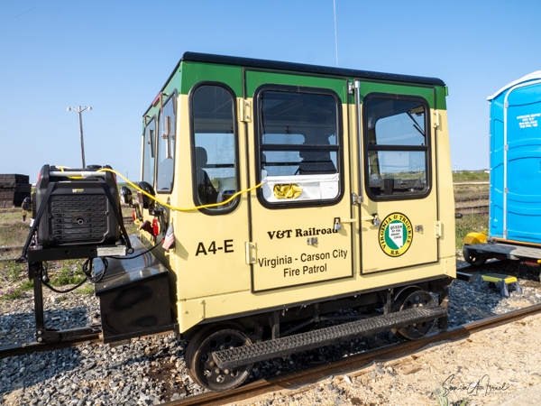 A jigger, also called a putt putt, handcar, a pump trolley, a pump car, a rail push trolley or a Kalmazoo, is a railway car that is powered by the people in it. In the “olden days,” it was used as a maintenance car or mining car. It typically had a arm (called the walking beam) that pivoted on a base with the passengers could move up and down to make the wheels turn. Because they are small, they could be moved on and off the tracks easily to get out of the way of the bigger trains.