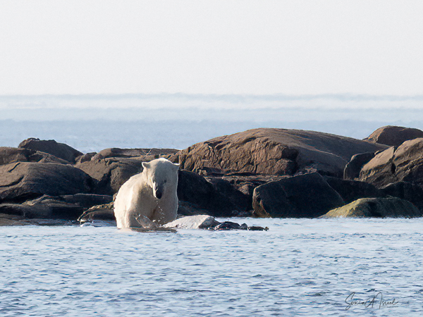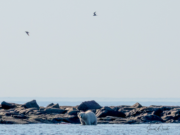 We got to see two polar bears, as some hang around even in the summer. More on them below.