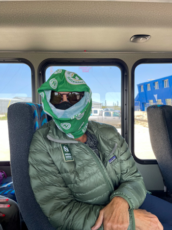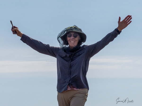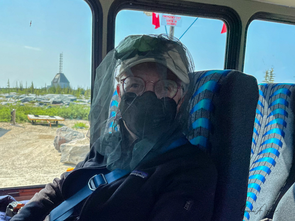 While trees don’t grow here, what does grow here are bugs. Lots of flying bugs. Lots of flying biting bugs. We were surrounded by black flies, mosquitoes and bulldogs. Yes, bulldogs. These are not actually dogs but very, very large bugs. We donned our mosquito nets to protect our faces. The bugs are drawn to the heat of the bus and were swarming everywhere. And whenever we opened the door of the bus or the hotel, we dashed in as fast as we could before all the bugs joined us. It didn’t really work. They joined us anyway. The inside of the bus windows looked like a mosquito graveyard as we tried to protect ourselves. You can see us wearing our nets above at the campfire as well. I know this sounds bad, and there really were lots and lots of these flying insects, but we managed and it did not stop us from loving every minute of this trip.