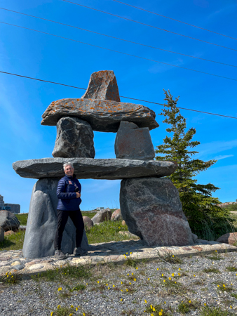 Inuksuk is an Inuit word meaning “that which acts in the capacity of a human.” It is built of rocks and resembles a human figure. And what it is really for is to act as a landmark to help people find their way. Sort of like a traffic or street sign. In the past, the inukshuk were used for navigation, as a point of reference and as a marker for travelers’ routes.