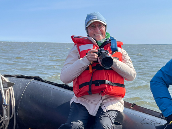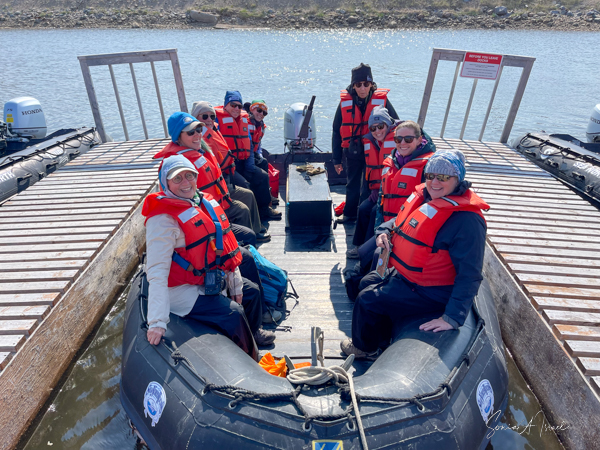 On the afternoon of our second day, we finally got to climb into zodiaks to look for beluga whales. We were touring with the Sea North Tours (https://www.seanorthtours.com/) whose motto is “We believe that beluga whales deserve respect and protection and we practice what we preach.” It is the oldest tour company  on the water in Churchill.