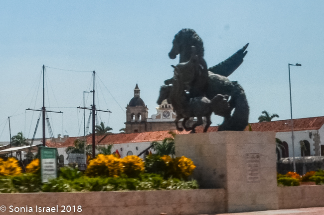 In the center of the plaza, with all the people sitting around it, was the statue of the liberator of Cartagena sitting atop a horse waving his hat to his admirers, their leader of independence, Simon Jose Antonio de la Santisima Trinidad Bolivar Palacios Ponte y Blanco, more generally known as Simon Bolivar or El Libertador.