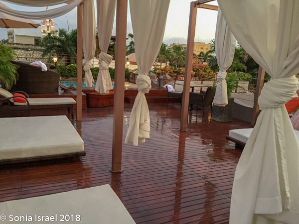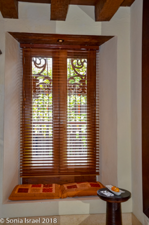 Right inside the entry was a large courtyard with water features and tables for breakfast, lunch and dinner when it wasn’t too hot or raining. We never did eat outside because it was, in fact, too hot. And just on the other side of the courtyard was a small swimming pool.