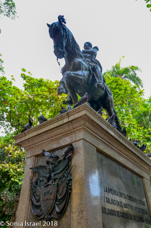 But in 1896 the equestrian statue of El Libertador Simón Bolívar was installed and since then it has been called “Plaza de Bolívar”. Bolivar was a Venezuelan military and political leader who liberated from Spain what is now Venezuela, Boliva, Colombia, Ecuador, Peru and Panama. He is the national icon of most of modern South America and is considered one of the heroes of the Hispanic independence movement of the early 19th century.