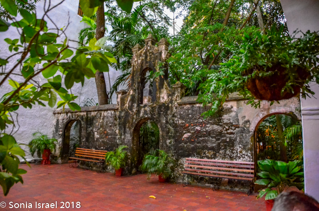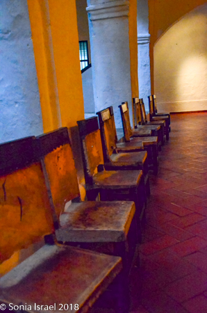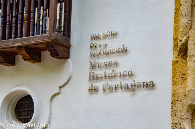 Since Cartagena was a center of commerce, a transit point between the Caribbean and Spanish settlements in western South America, the city became the third in the Spanish empire to have a tribunal of the Holy Office of the Inquisition, housed in the Palace of Inquisition. While the name, Court of the Holy Office, sounded innocent, the the Spanish Inquisition carried out its gruesome work until independence from Spain was won in 1812. The Palace was used by Inquisition to try Jews and other non-Catholics and about 800 individuals believed guilty of crimes such as black magic were tortured and publicly executed here. Vicky told us lots of stories about the inquisition. And we slowly and reverently read the stories in the exhibits and tried to imagine how those instruments of torture could actually be used on people.