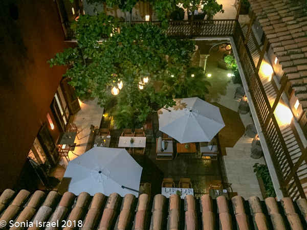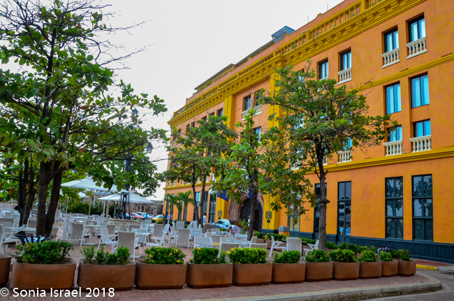 We were flying into Cartagena and decided the most convenient way to do it was break up the trip by flying to Miami, staying overnight at the Miami International Airport Hotel, and then flying into Cartagena early on Monday morning. And that is exactly what we did. Now, this is not a blog about Miami, but I have to say that the airport hotel was amazingly convenient. We landed at terminal D, walked over to E, door 11 and found the check-in desk. We didn’t even have to leave the airport. The hotel elevator was also right there and took us up to our floor. This is one of the most convenient airport hotels I’ve ever stayed at. The room was basic, but sufficient and clean. They were outlets on one side of the bed (my requirement of every hotel). We overlooked the airport and watched a pretty sun set over the planes. We went up to the seventh floor to the Viena restaurant which also overlooked the airport. I had the Caesar salad which was overdressed. My husband had the Asian salad with chicken which was perfect. But the best part really is the convenience as the next morning we didn’t have to get up early to make it to the airport. We were already there.