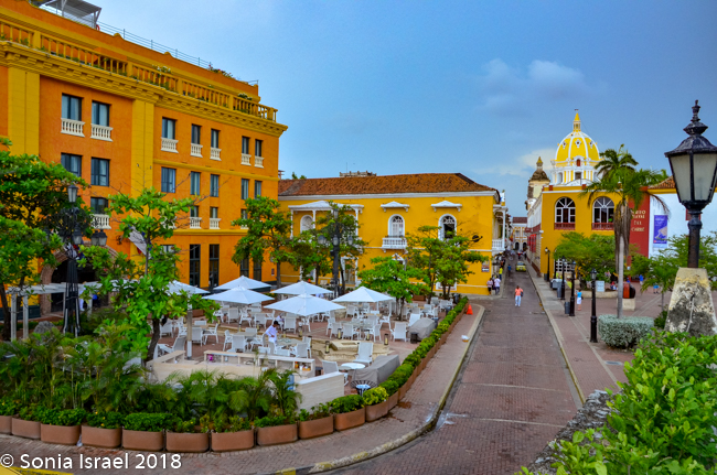 The first square that most people see when they enter the Walled City is the Plaza de Los Coches ( Square of the Cars) with the Torre del Reloj (Clock Tower) as it is the main gateway into the city. It was the original entrance of the fortified city. The Clock Tower is probably Cartagena’s most famous landmarks. Why “Square of the Cars?” Because the mayor allowed cars to park in front of the numerous sweet shops that line the edge of the square. It was originally called Boca del Puente (The Mouth of the Bridge) linking Getsemani to the Old City via a drawbridge over a moat. But for us it was the last one as from here we were in fact heading out of the walled city to Getsemani.