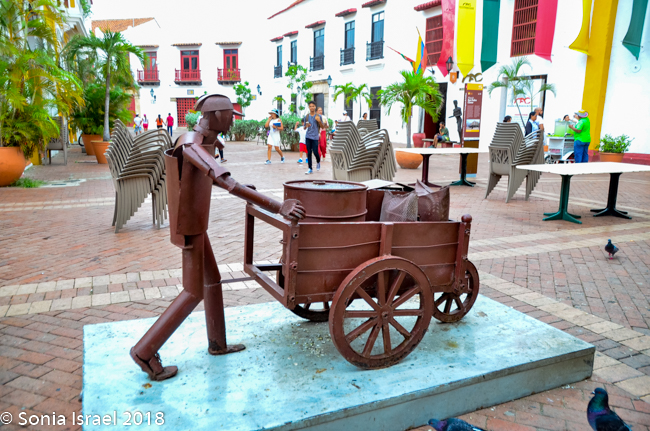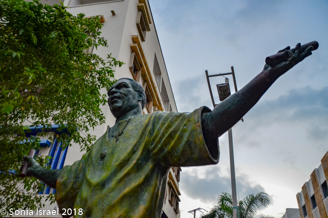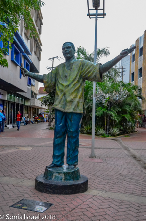 We passed one more large, 14-foot statue, of a very tall man, in baggy blue jeans and a green t-shirt with both arms outstretched. It was a statue of El Joe Arroyo (Álvaro José Arroyo González, better known as Joe. Joe was a famous Cartagena salsa singer and composer who was considered one of the greatest performers of Caribbean music. He was of African descent and died too young at age 55.