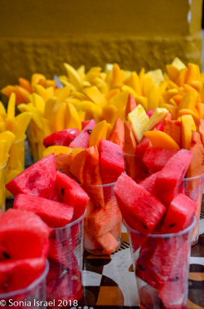 We continued on our walking tour of the Old Town. We walked through the narrow streets filled with vendors. At times it seemed like there were more vendors than tourists. And, along with the usual souvenirs, they were selling lots of fruit. Fresh whole fruit. Cut fruit. Fruit by the pound. That fruit was for sale.