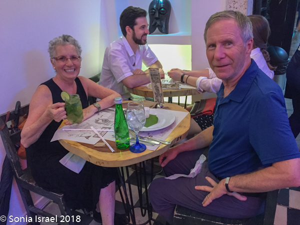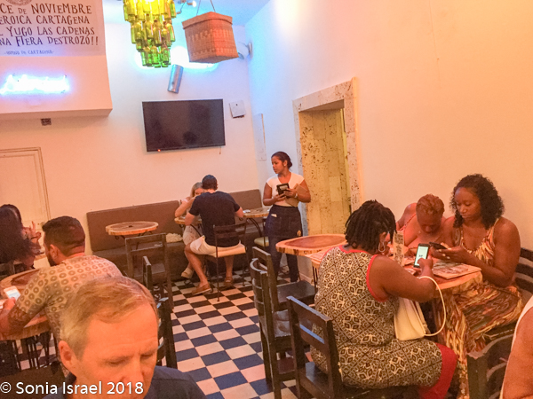 That night we wanted to eat at La Mulata, back in the Walled Town, just a few blocks from our hotel. They don’t take reservations and it opened at 6:30. We had stopped there earlier in the day with Vicky who read us the menu, told us the best things to order and told us to be there before 730 as that was when it would start getting packed.