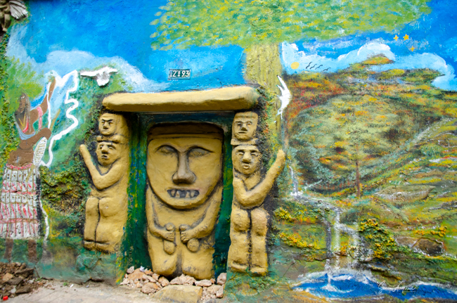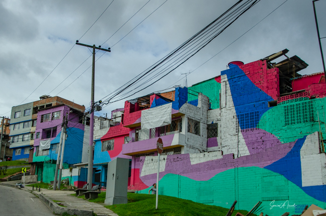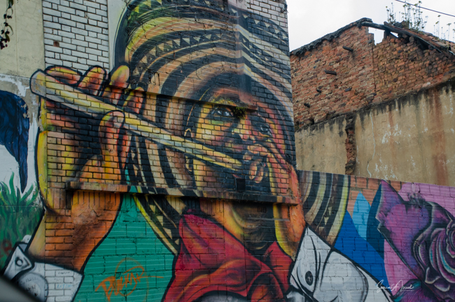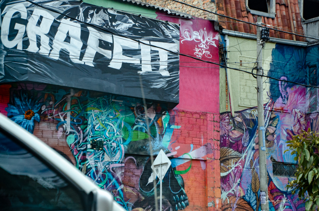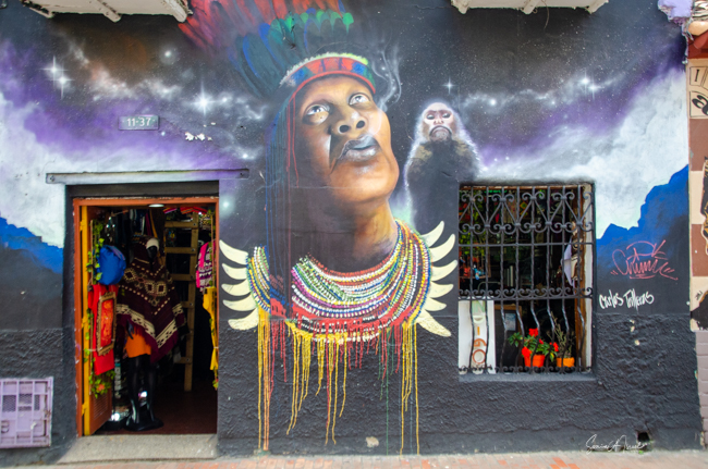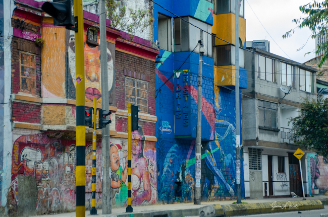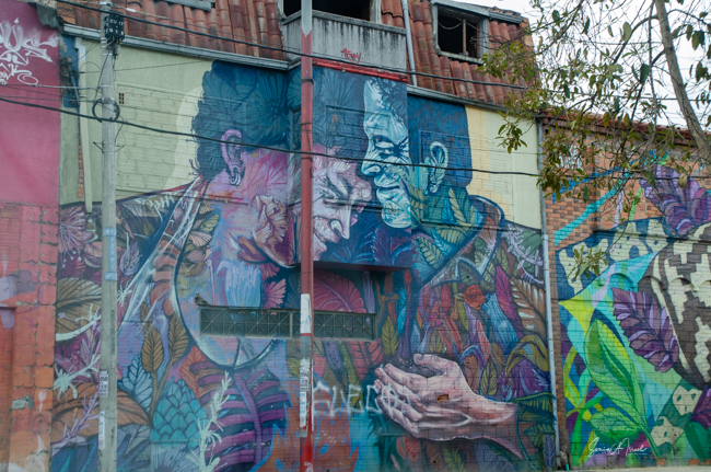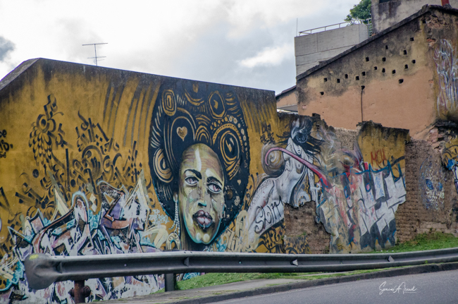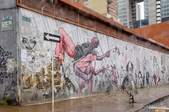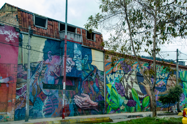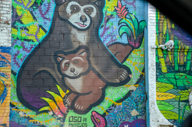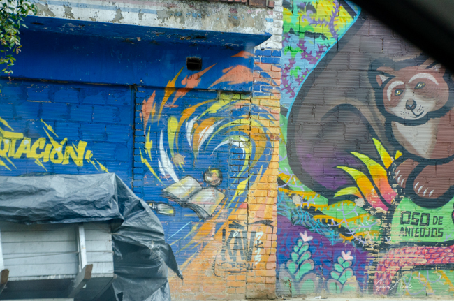 Juan then took us to see street art, called graffiti, but much more beautiful. If you read my chapters on Caratagena and Medellin, you know that street art is a big thing in Colombia. The colorful, vivid, huge murals on the sides of the buildings were spectacular. There is street art all over the La Candelaira area, the Old Town, which we would visit later in the afternoon, but this was a single street in the Santa Fe area that we slowly drove through, with each building covered in art depicting people, animals, politics, and so much more.
