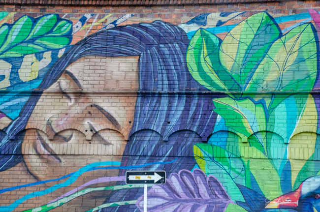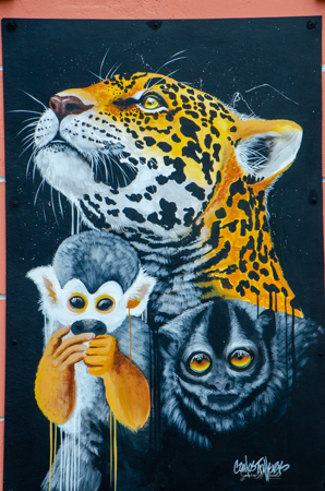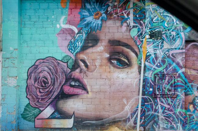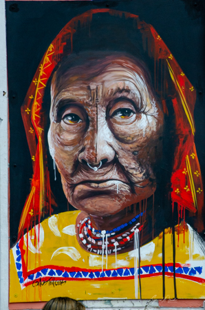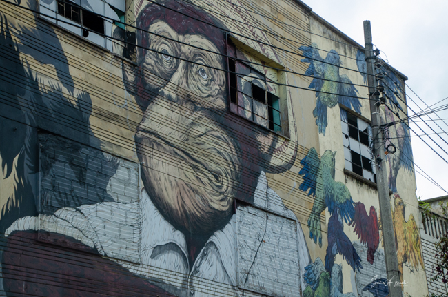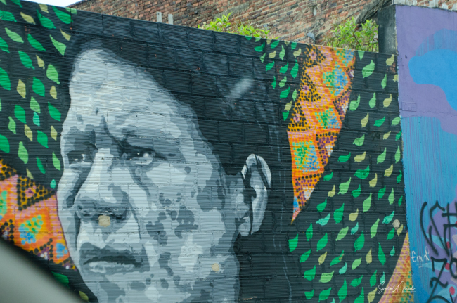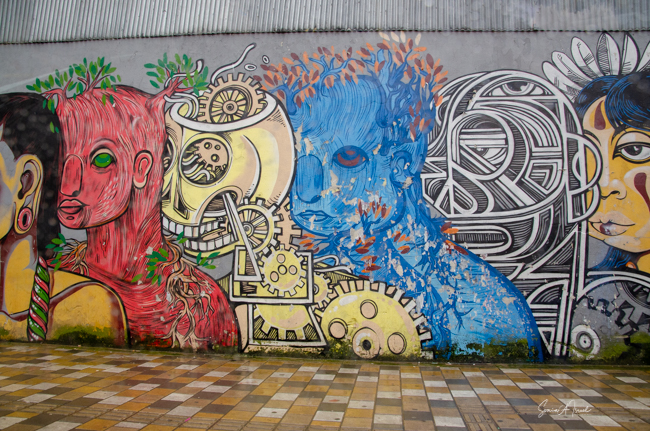 The first thing we noticed, through the raindrops, were the large painted street art murals. We would see many more in the next few days, but the shear size of these along with their colorful beauty, sure caught our eyes.