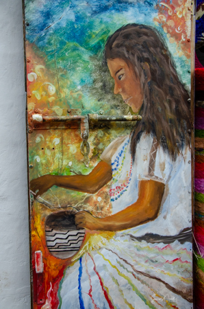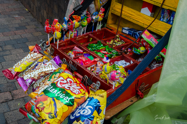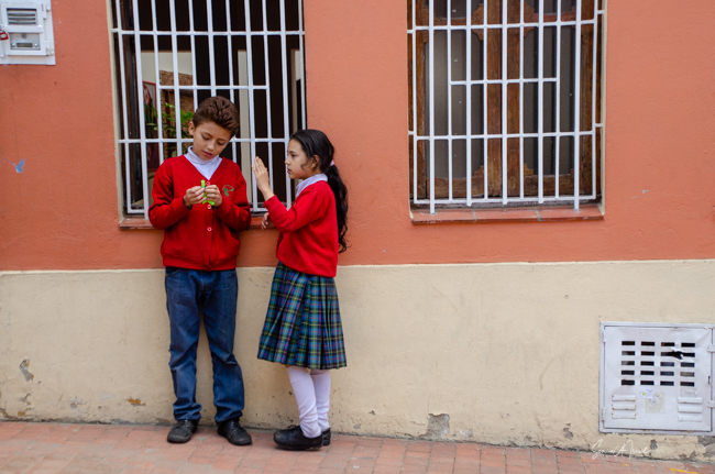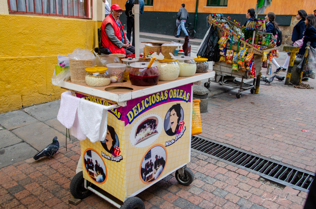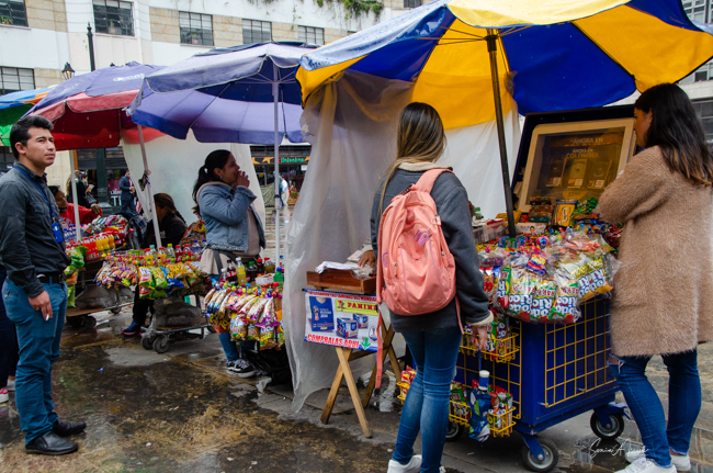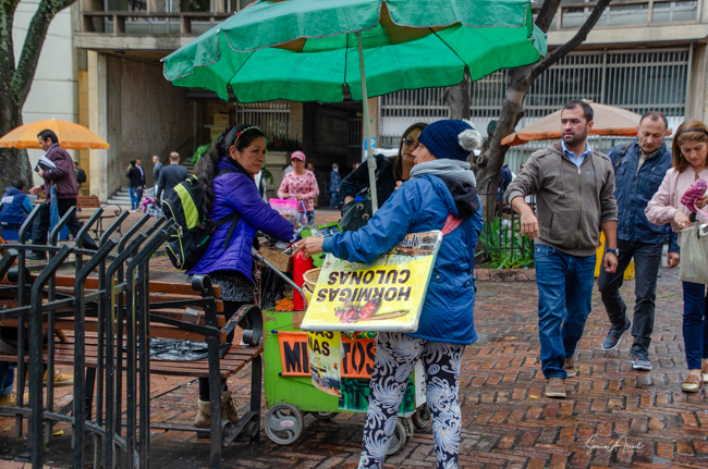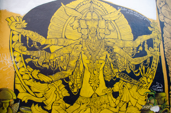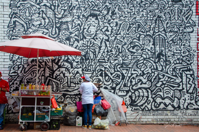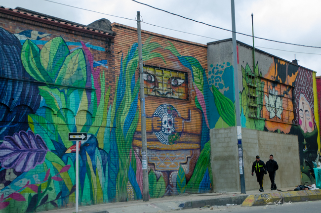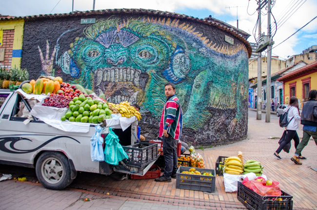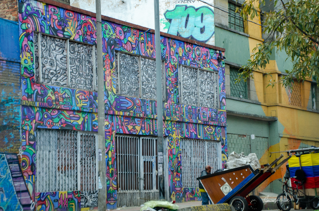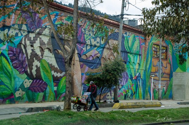 We began our walk, mesmerized by all the students (as the Universidad el al Salle is here), the street art, the narrow cobblestone streets (many of them closed to cars), the vendors with their home-made trinkets and art. But mostly the color. The color of the centuries old houses. The color of the murals. The color of the old churches (there are 400 of them in this one neighborhood). The color of the people’s outfits. The color of the trees (including the beautiful cecropia telealba with its silver leaves). The color of the sky. The color of the carts. The whole place felt like an eclectic juxtaposition between old and new, historic and modern.