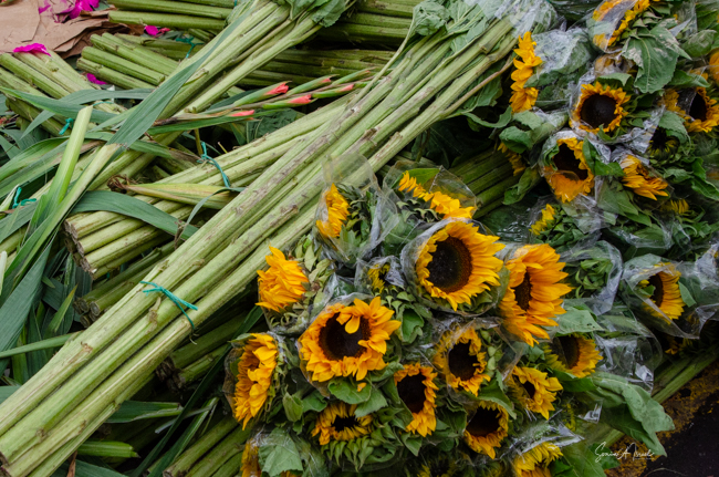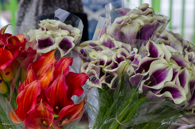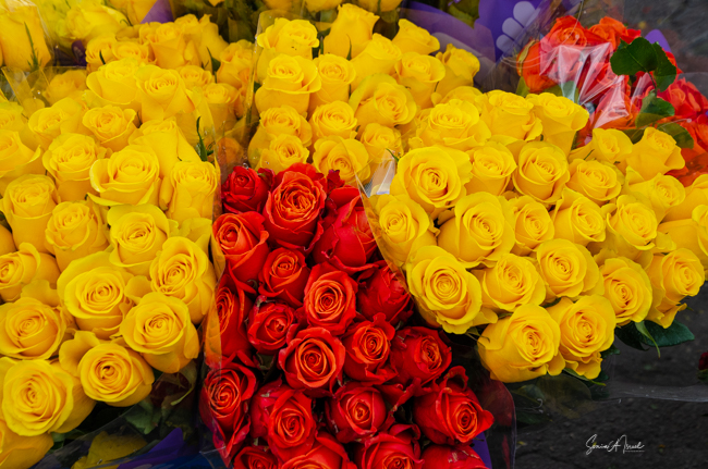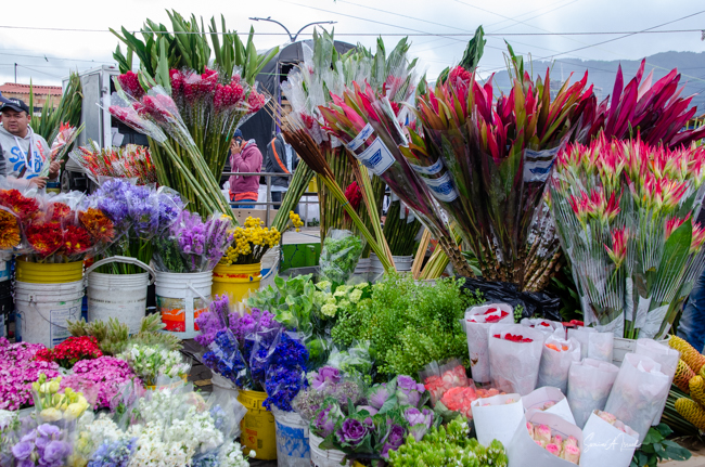 As we drove up, I was amazed to see the whole parking lot full of flowers. Not only is Paloquemao one of Bogota’s most famous and important food markets, it is also a huge flower market. We parked the car and wandered among the flowers enjoying all the colors, inhaling all the smalls of the flowers and watching the vendors sell the beautiful stalks they had grown, or had brought from the owners, to owners of flower shops, restaurants and just people who wanted beautiful flowers for their homes. We saw orchids, roses, crocuses, bird of paradise (which also grow in my backyard) and so many more, some I could not name. Turns out that Colombia is one of the leading producers and exporter of flowers in South America and the second exporter of flowers in the world.