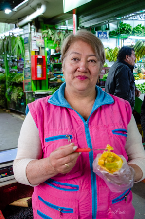 We then walked into the food part of the market. The market was first begun in 1946 but moved to its current location in 1967, still many years ago. It has been described as a “playground for foodies and a focal point where the produce of the Caribbean and Pacific coasts, the fertile Andes and the jungle merge.” But it is not just for foodies. It is for the locals.