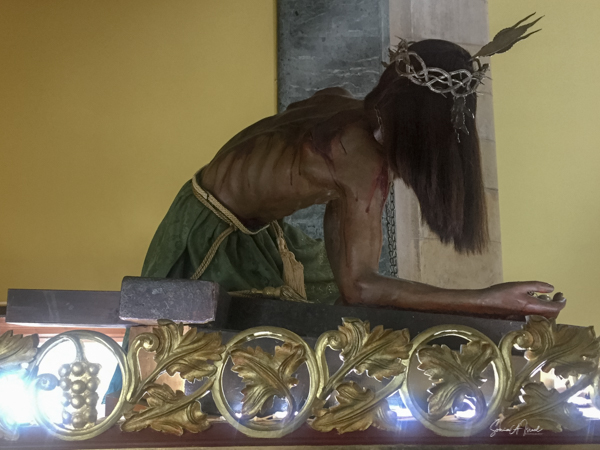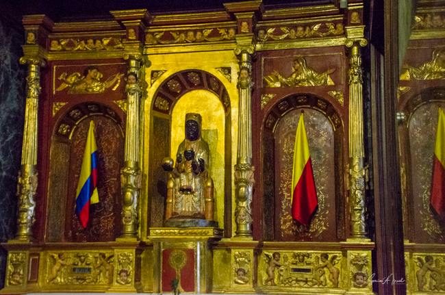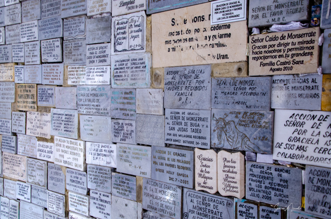 In the back of the chapel is a shrine dedicated to El Señor Caído (the Fallen Lord). The statue’s full name is Santo Cristo caído a los azotes y clavado en la Cruz (“Holy Christ fell to the whip and nailed to the Cross”). It has become one of the most important religious statues in Colombia and in times of crisis, is carried down to the city by massive crowds of pilgrims and devotees. All along the back walls people praying to this Christ have left tiles with messages. Oh, and this Christ is also black.