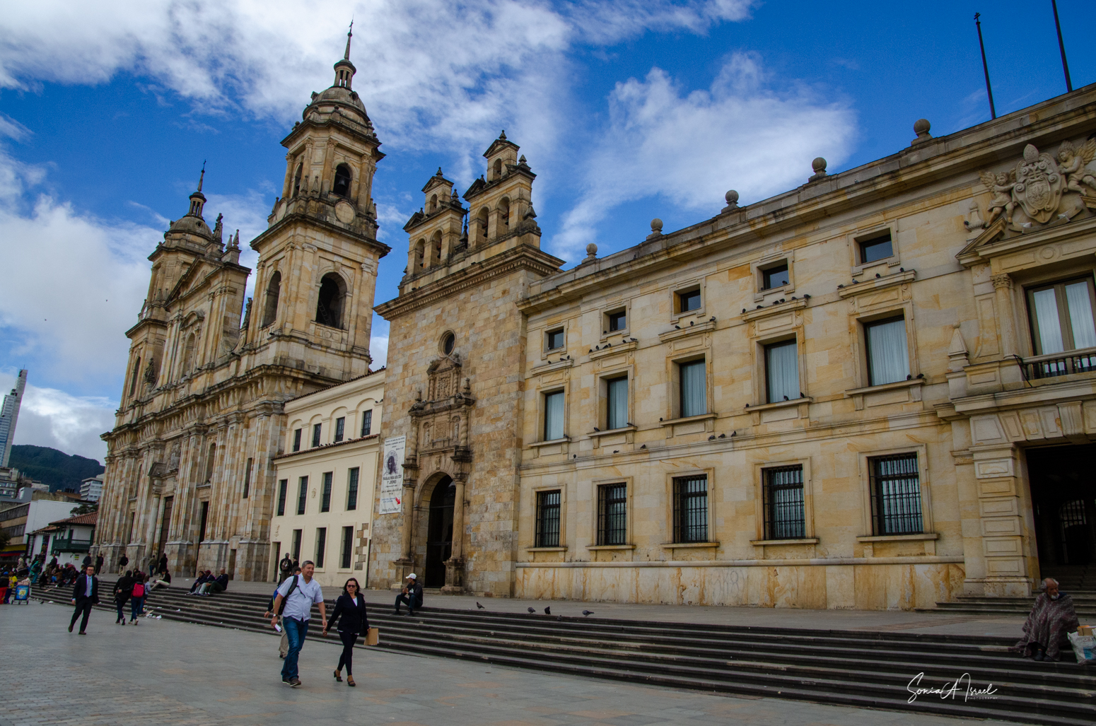 Plaza de Bolivar was once called Plaza Mayor as was used for civil and military purposes, as a market, a bullring and a gallow. Now it is surrounded by many important buildings. And of course in the very center is a statue of Simon Bolivar (to read more about Simon Bolivar and his importance in Colombia, see my chapter on Cartagena).