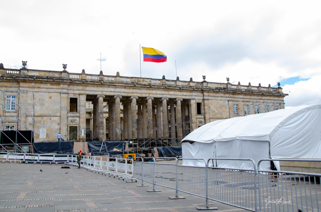 And then there is the Capitolio Nacional (or National Capitol) which is home to both houses of the Congress fo Colombia. One of the most important frescos in all of Colombia is here. It shows Bolivar and Santander exiting the Cucuta congress during the creation of Colombia. The central area of the Capitol, known as the Salon Eliptico, is where congress meets and is the actual chamber for politicians and the Senate. In the internal plazas are busts of former presidents such as General Tomás Cipriano Mosquera, president on four occasions, and Rafael Núñez, the composer of the Colombian national anthem.