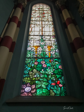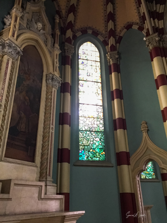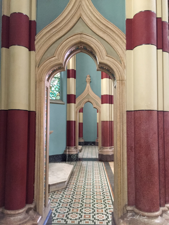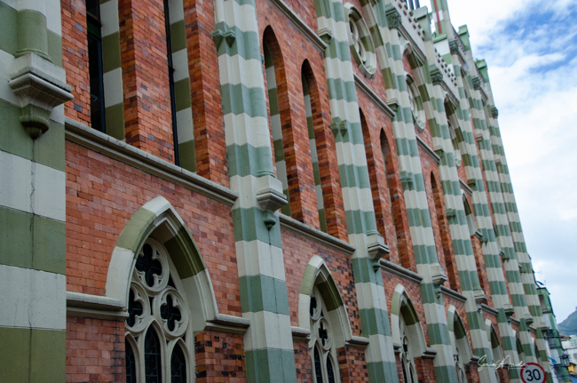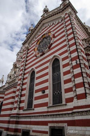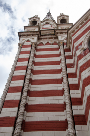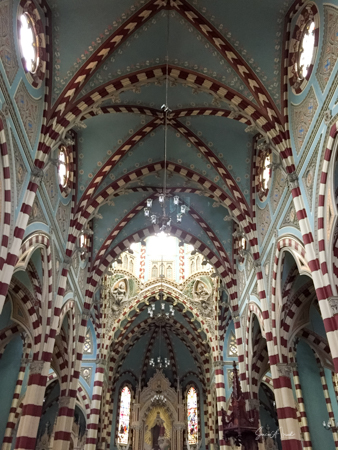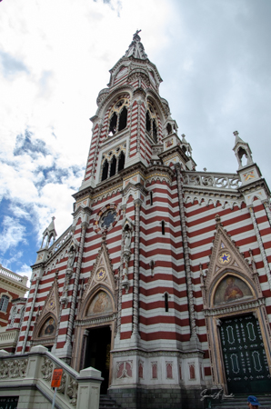 I mentioned that there are 400 churches in this area. We stopped in one of them, Santuario Neustra Senora Del Carmen (the National Shrine of Our Lady of Carmen), which towers above the neighborhood. It would be hard to miss this beautiful church as the façade is all red and white stripes of Venetian mosaics, a pattern that can also be found inside the church. Although built in the Florentine Gothic Style, the church is most known for its Byzantine and Moorish touches.