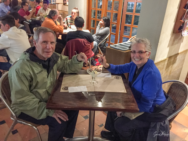 As you read, we spent three days in Bogota. We travel a lot and always do our research. Nueve got great reviews so we made a reservation about a month ahead of time for our last night in Bogota, actually our last night in Colombia. They don’t open until 7pm so we walked over slowly. We must have been there too early and all the lights were out because we walked past it twice before we found it. We walked to the front door and found it still locked, although it was a few minutes after 7. Two women walked up and rang the bell and the door was opened. Maybe that is what we needed to do, but we had no idea. The maitre d’ asked if we had a reservation and we said yes. He asked us to wait in the lobby for a moment while he went to check. He came back and walked us to a couch with a low coffee table. I looked at it in shock and said, “We can’t eat a dinner like that. We would like a regular table.” He said “No. No other table.” Note – the restaurant was totally empty. We were the first ones there. But there was “no other table.” I explained again that we can’t eat that way. He was downright rude. We said, “then we are leaving,” and he escorted us out.