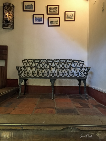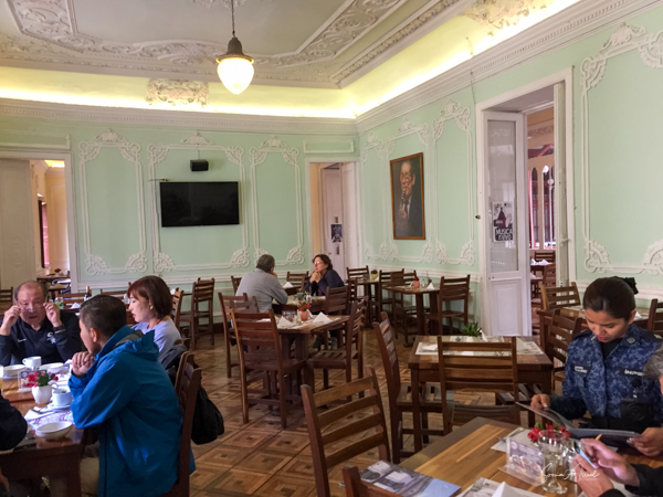 As it explains in the mneu: The year 1816 was known as the year of terror. General Pablo Morillo used the house for the Permanent Council of War to judge, and put to death, the main leaders of the independence movement. As if that were not enough, it became the place of the “dance of the wild beasts.” The totrurers “invited” the mothers, wives, daughters and sisters of those condemned to die, those martyrs who were imprisoned in the cloisters of the Colegio del Rosair just four blocks from this building, to a dance. The dance was held in the main hall of this house, known today as the Music Room. The women, weeping the entire time, were forced to dress in gala dresses and to dance with those responsible for the cruel fate of their loved ones. And today, the house makes people happy by serving delicious food.