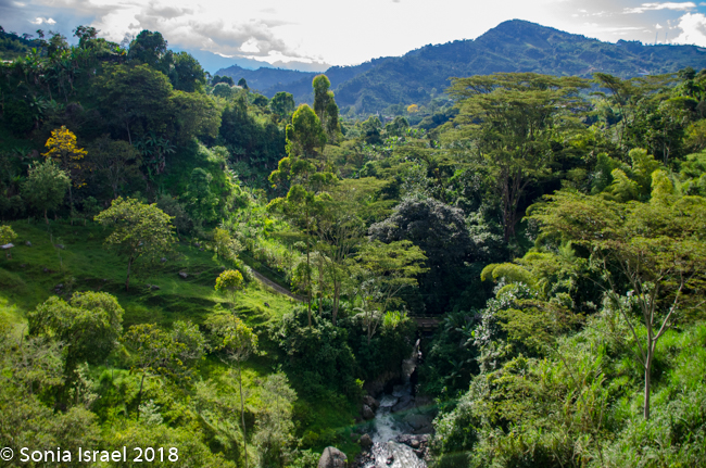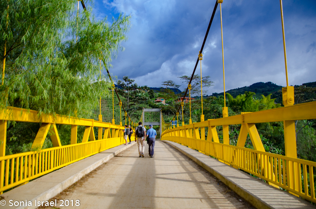 So, in the afternoon, we began our hike to find them. We walked to the end of the street where there was a bright yellow bridge, the Serranias bridge, also called the Bridge that Shortens Distances in Jardin. The community of Serranias had to travel over an hour to get to town until this bright yellow bridge was built.