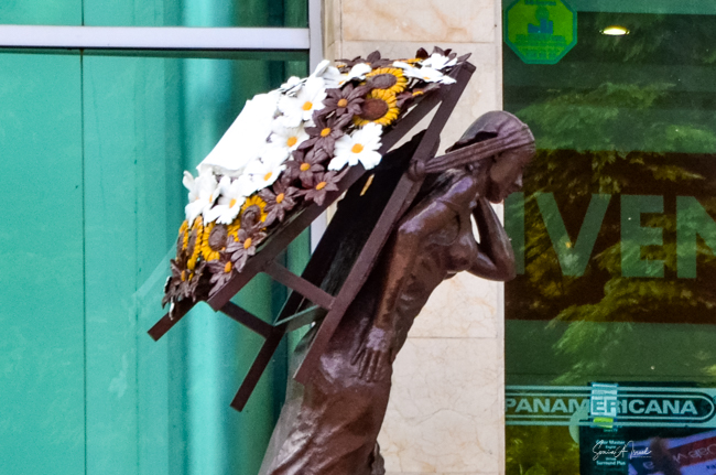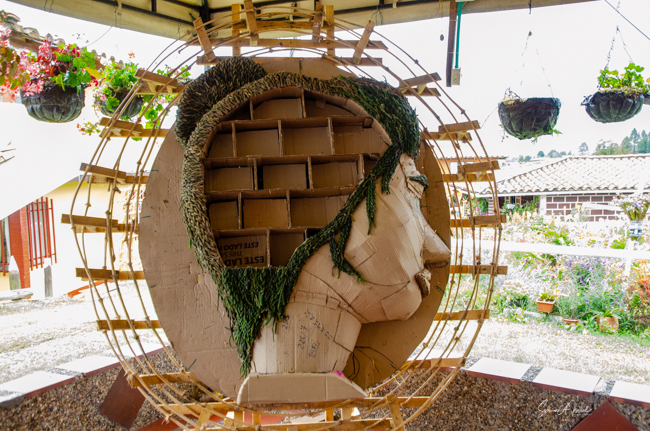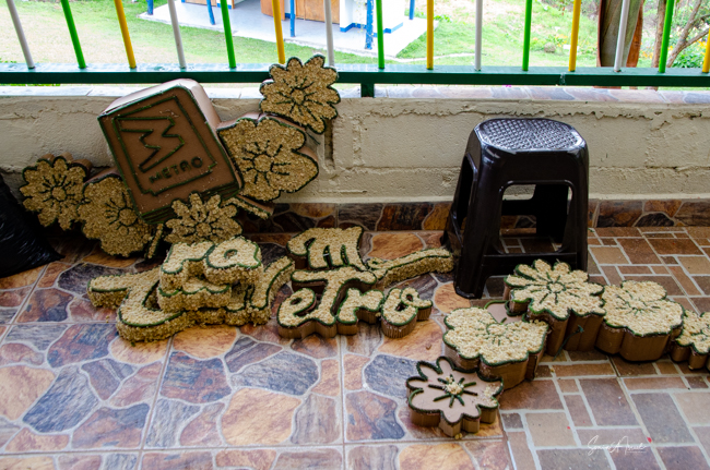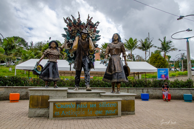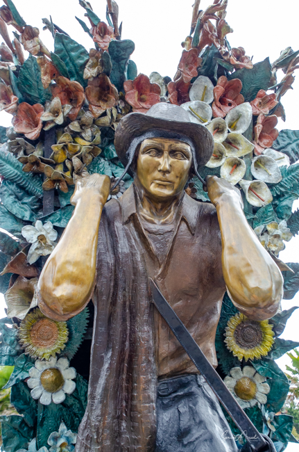 We drove some more and got to the main square of Santa Elena where there was a statue honoring the flower growers, the flower arrangers and the silleteros. At the bottom of the statue it says, “Cuando pasan los silleteros, es Antioquia que pasa.”  “When silleteros pass by, it’s Antioquia that is passing.”